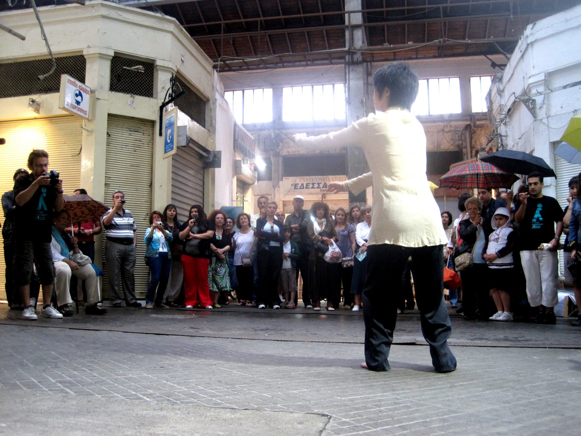 o θεατρικό δρώμενο από το Κρατικό Θέατρο Βορείου Ελλάδος στις αγορές Καπάνι και Λουλουδάδικα