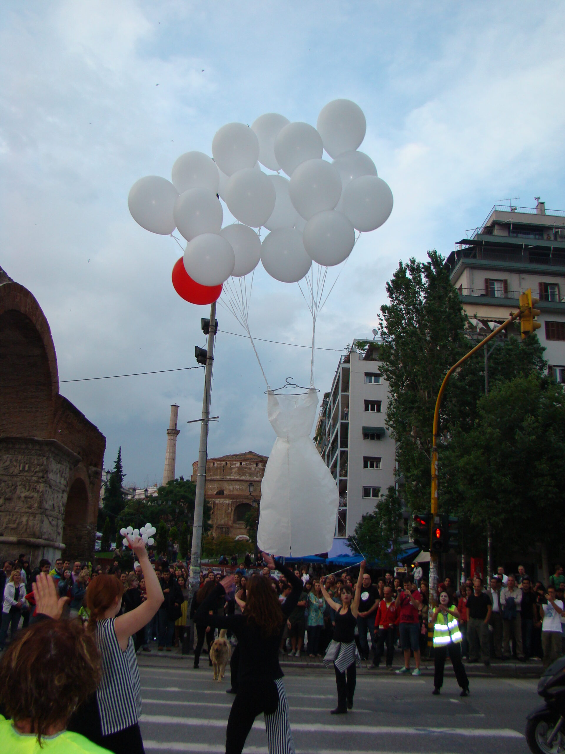 o δρώμενο από το Χοροθέατρο Αδράστεια στο φανάρι των οδών Τσιμισκή & Αριστοτέλους