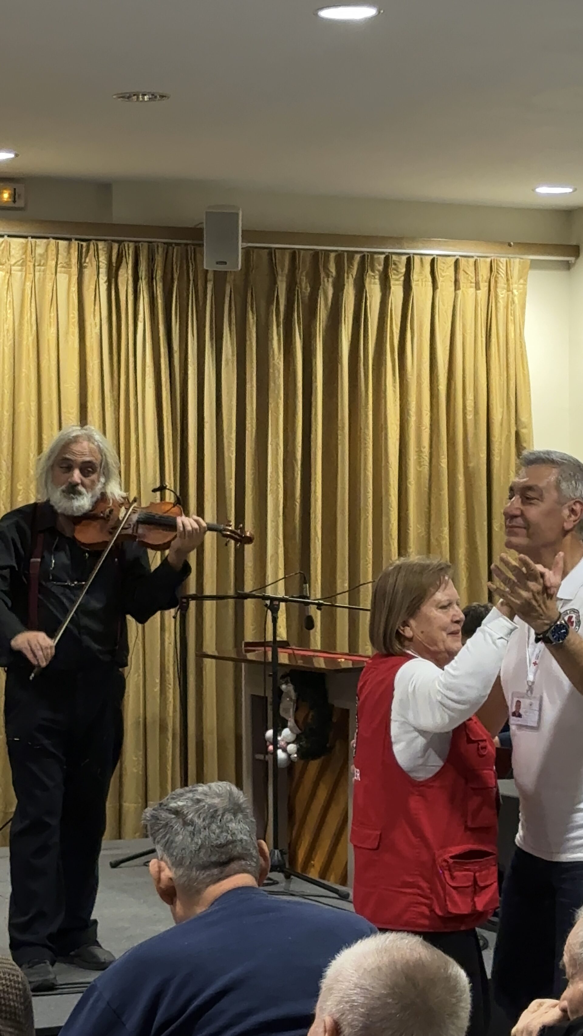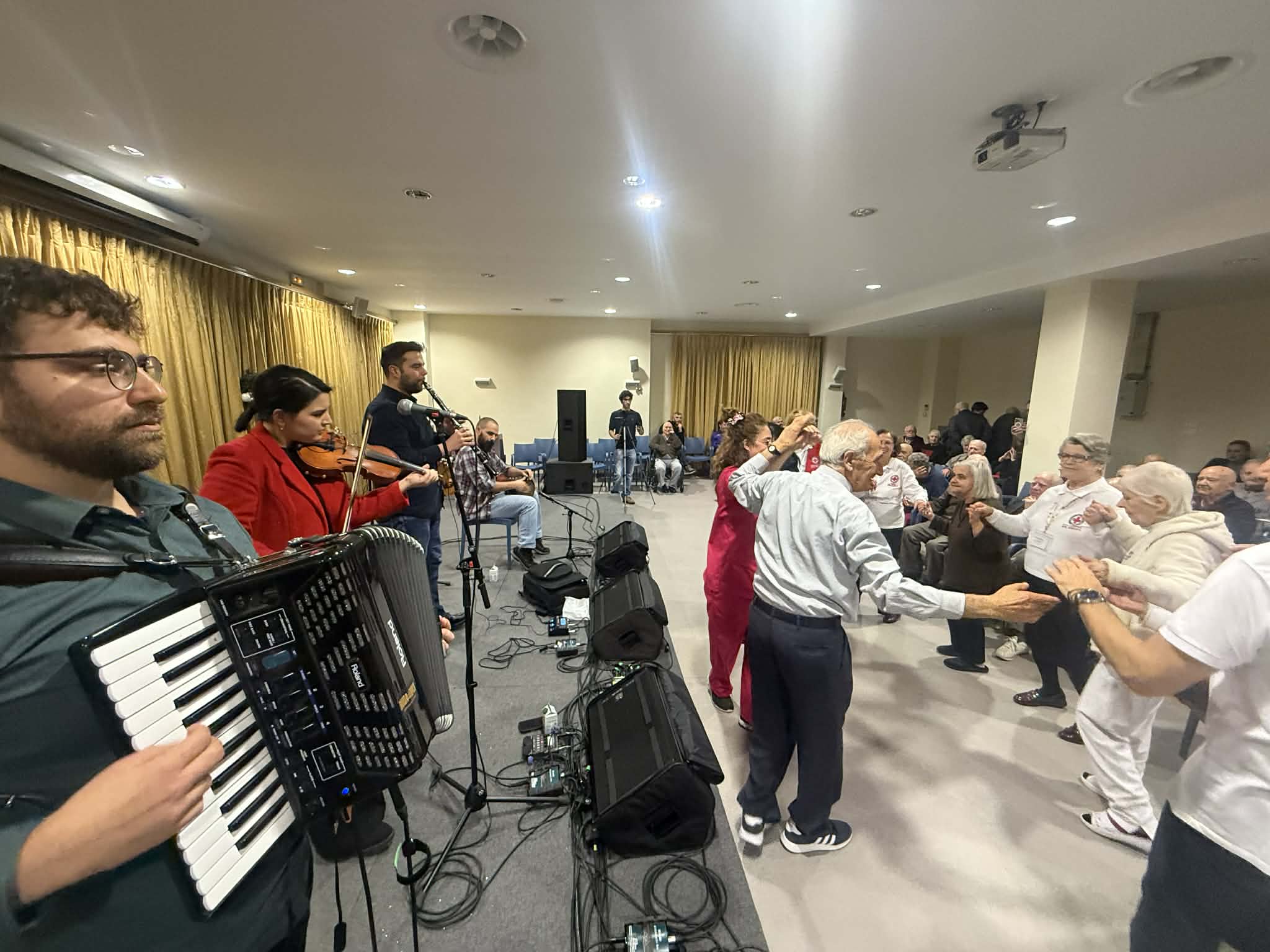 Και ήμασταν όλοι αποφασισμένοι να κάνουμε αυτή τη βραδιά μια αληθινά μαγική βραδιά. Από τα παιδιά του Μουσικού Σχολείου Θεσσαλονίκης που ξεκίνησαν το πρόγραμμα με υπέροχα κάλαντα από όλη την Ελλάδα, μοναδικά παιγμένα με τα όργανα και τραγουδισμένα με τις φωνές τους, τον εξαιρετικό Γιάννη Σερβετά που ακολούθησε στη σκηνή ξεσηκώνοντας με τα αστεία του, τον Άκη Αρχοντή και τον Νίκο Μπιλιλή που έπαιξαν υπέροχα βαλς και ταγκό τα οποία χόρεψαν οι ηλικιωμένοι και τέλος τους Βέρσο, μια σπουδαία μπάντα παραδοσιακής μουσικής που έπαιξε με ένα μοναδικό τρόπο σκοπούς από διάφορες περιοχές της χώρας ολοκληρώνοντας με γλέντι μια βραδιά που τα είχε όλα.