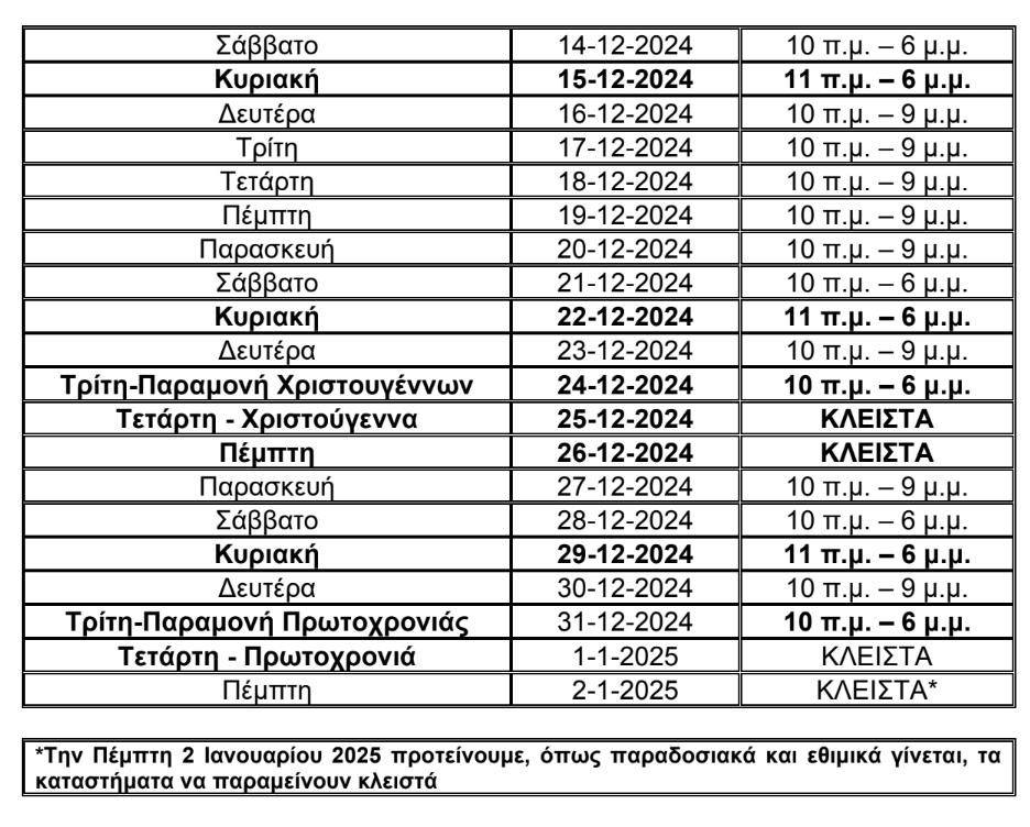 Ποιες Κυριακές θα είναι ανοιχτά τα μαγαζιά;