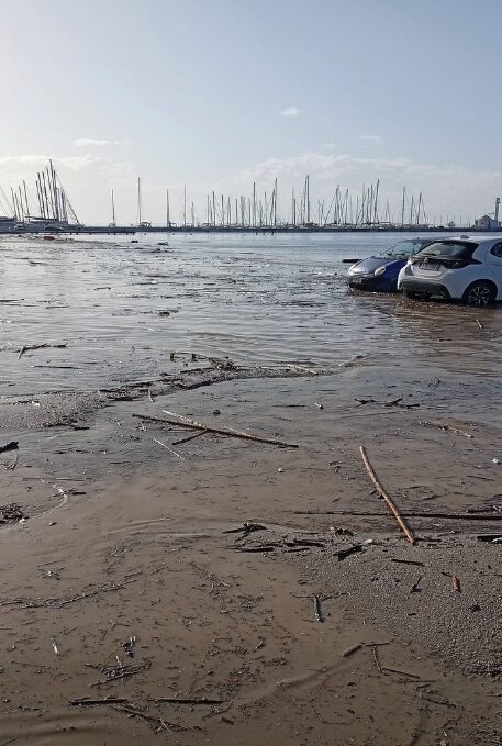 Η έντονη βροχόπτωση που επικράτησε μέχρι τις μεσημεριανές ώρες αύξησε τη στάθμη της θάλασσας σε πρωτόγνωρα επίπεδα