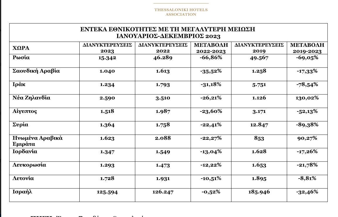 Εμφανείς είναι οι επιπτώσεις στις διανυκτερεύσεις από το Ισραήλ και τη Ρωσία, δύο μεγάλων αγορών για την περιοχή της Θεσσαλονίκης, λόγω των συγκυριών που επικρατούν σε αυτές τις χώρες.