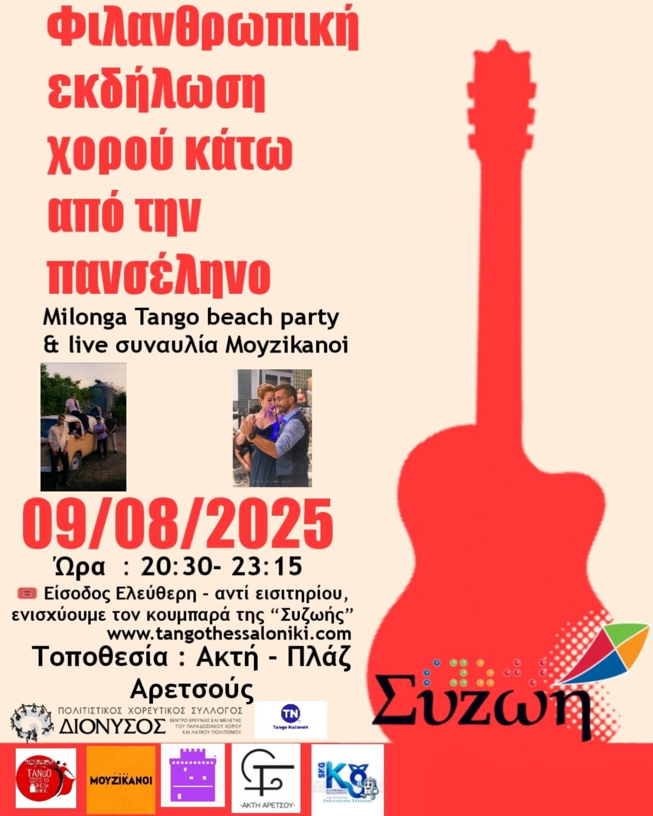 Μια ξεχωριστή βραδιά στο φως της αυγουστιάτικης Πανσελήνου διοργανώνεται αυτό το Σάββατο 9 Αυγούστου στην «Ακτή Αρετσού». Ο Δήμος Καλαμαριάς και η Δ.Ε.Τ.Ε.Κ. Α.Ε. σε συνεργασία με τον Πολιτιστικό Χορευτικό Σύλλογο «Διόνυσος» και το Tango Thessaloniki διοργανώνουν μια εκδήλωση χορού από τις 20:30 έως τις 23:15.