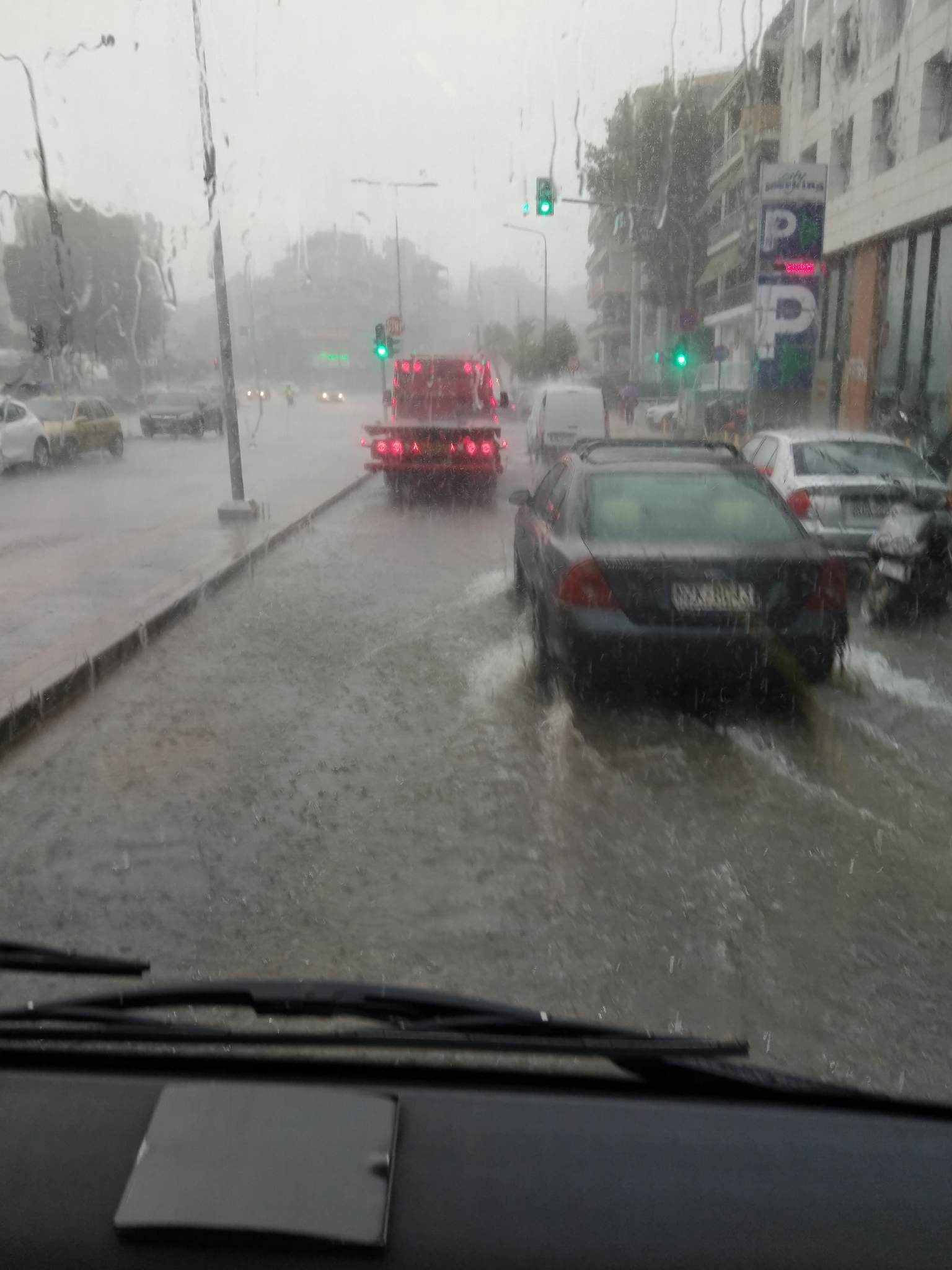 Έντονη η βροχόπτωση όμως και στο κέντρο της πόλης