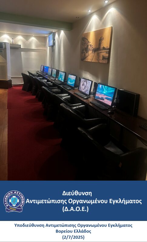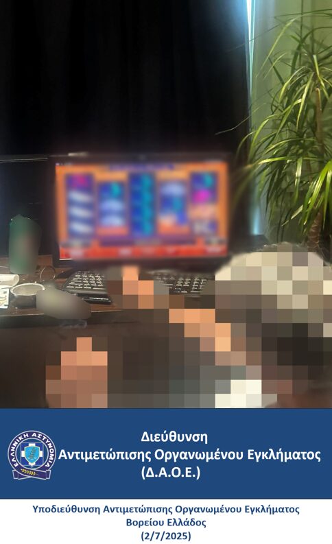 Από το Τμήμα Δίωξης Οικονομικών Εγκλημάτων της Υποδιεύθυνσης Αντιμετώπισης Οργανωμένου Εγκλήματος Βορείου Ελλάδος, εντοπίστηκε κατάστημα υγειονομικού ενδιαφέροντος σε περιοχή της Θεσσαλονίκης, όπου διεξάγονταν παράνομα τυχερά παίγνια.