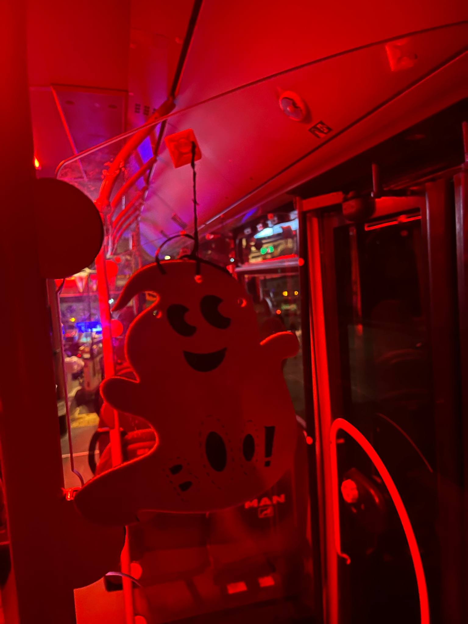 Το βράδυ, η ατμόσφαιρα γίνεται ακόμα πιο …παραξενη. Στο ημίφως, με την κατάλληλη μουσική υπόκρουση, νιώθεις πως δίπλα σου μπορεί να καθίσει η Wednesday από την Οικογένεια Άνταμς… και να κατέβει στην επόμενη στάση.