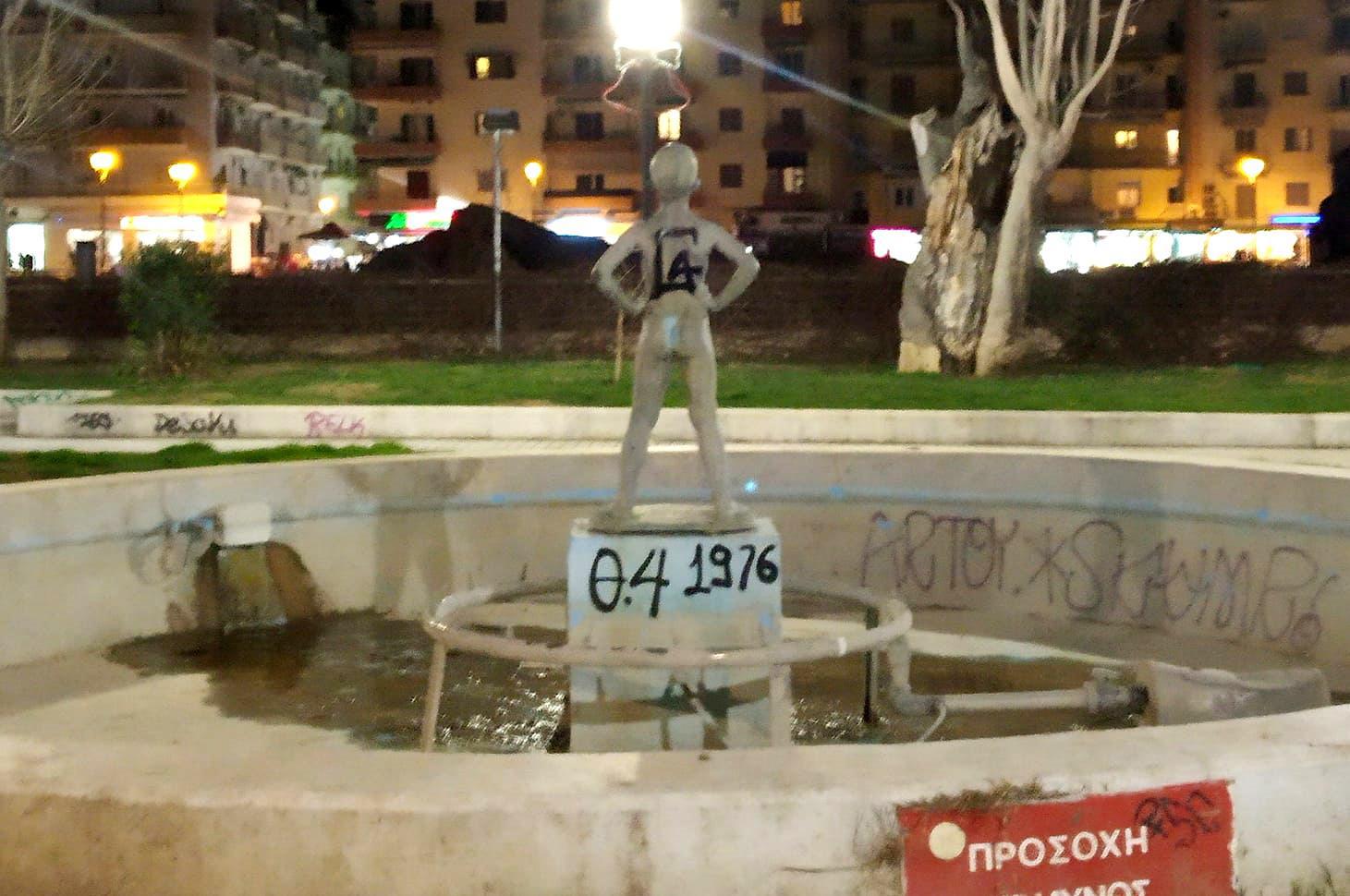 Για μια ακόμα φορά έπεσε θύμα βανδαλισμού το «Αγόρι που σφυρίζει» στην πλατεία Ναυαρίνου στη Θεσσαλονίκη. Μάλιστα στο σιντριβάνι όπως μπορείτε να δείτε υπάρχει ακόμα καρότσι και πλαστικό κολωνάκι σήμανσης μετά από επιδρομή νεαρών χθες το βράδυ.