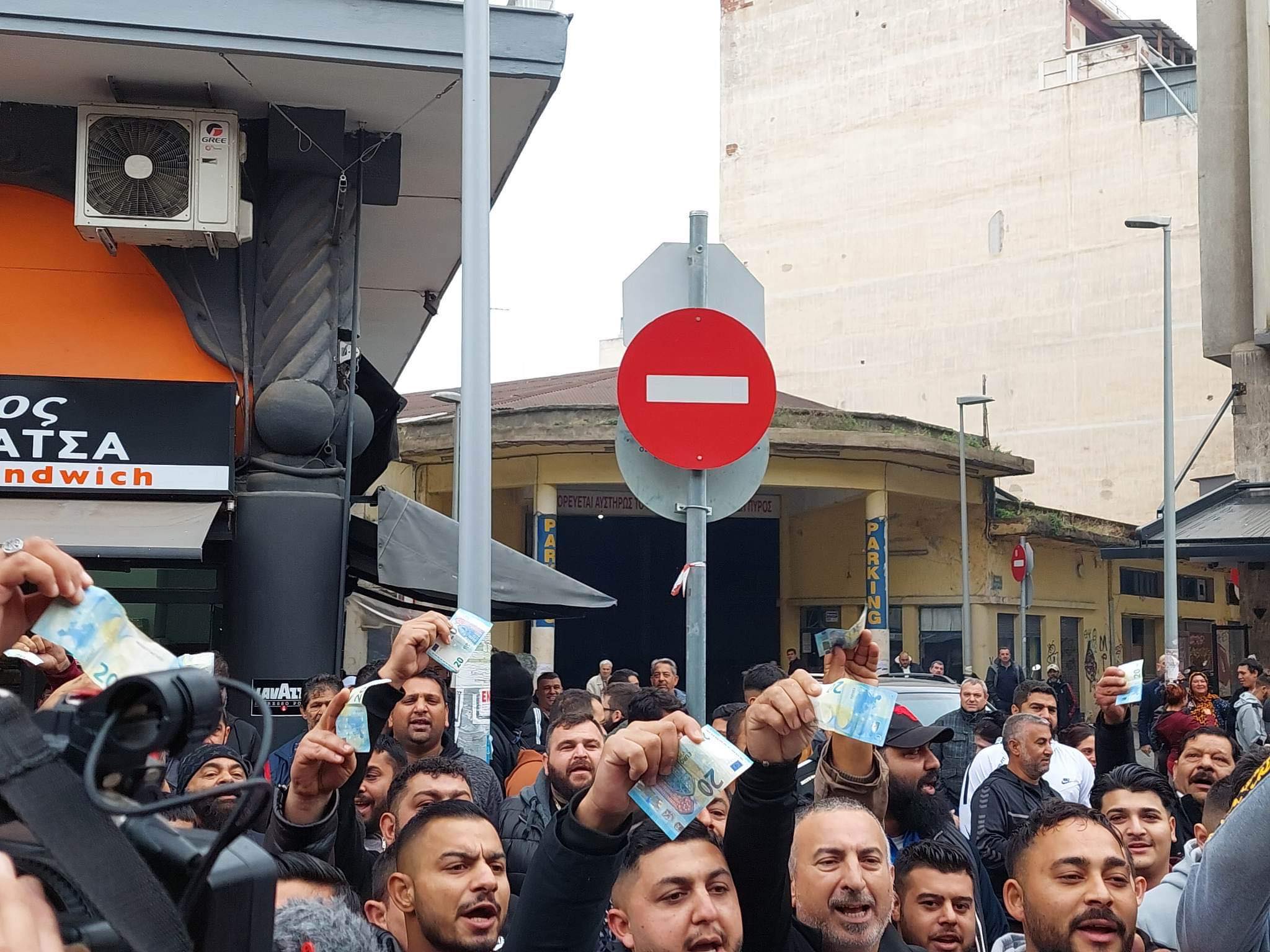 Θεσσαλονίκη-ΕΙΚΟΝΕΣ: Ρομά έκαψαν χαρτονομίσματα έξω από τα δικαστήρια