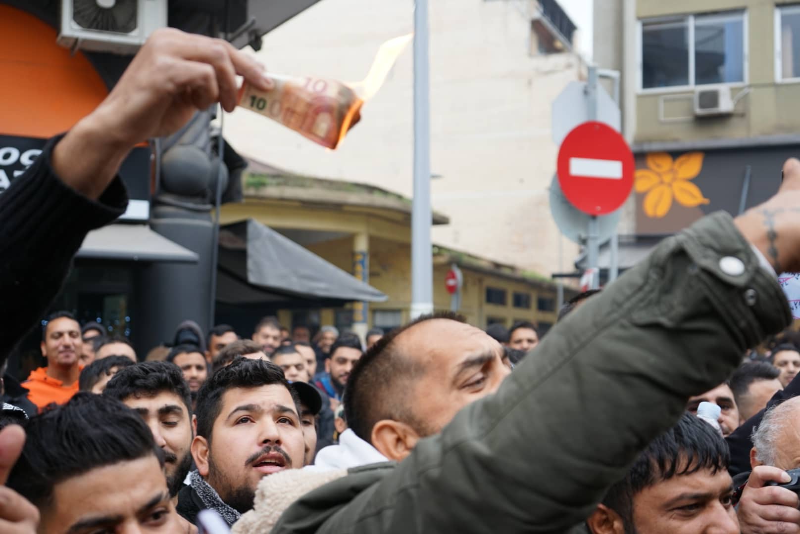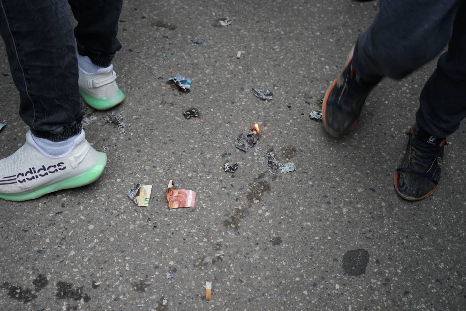 Οι συγκεντρωμένοι έβαλαν φωτιά σε χαρτονομίσματα σε μια συμβολική κίνηση διαμαρτυρίας, καθώς θεωρούν ότι ο αστυνομικός πυροβόλησε τον ανήλικο λόγω της καταγωγής του και όχι με αφορμή την καταδίωξη που ακολούθησε από τη στιγμή που ο 16χρονος έβαλε βενζίνη στο όχημα που οδηγούσε, αλλά έφυγε χωρίς να πληρώσει.