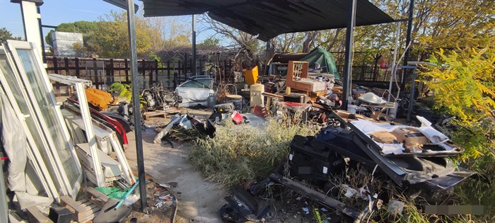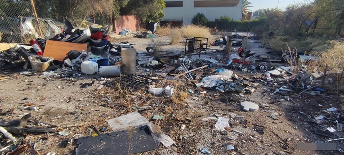 Επιπλέον, στον προαύλιο χώρο, υπήρχαν τοποθετημένες σε παλέτα αποξιλωμένες πλάκες ελενίτ (αμίαντος), τα οποία χαρακτηρίζονται ως επικίνδυνα απόβλητα, ενώ παραπλεύρως του ίδιου χώρου, υπήρχαν σκορπισμένα στο έδαφος απόβλητα ηλεκτρονικού και ηλεκτρικού εξοπλισμού, ηλεκτρικές συσκευές, καθώς και μέρη αυτών.