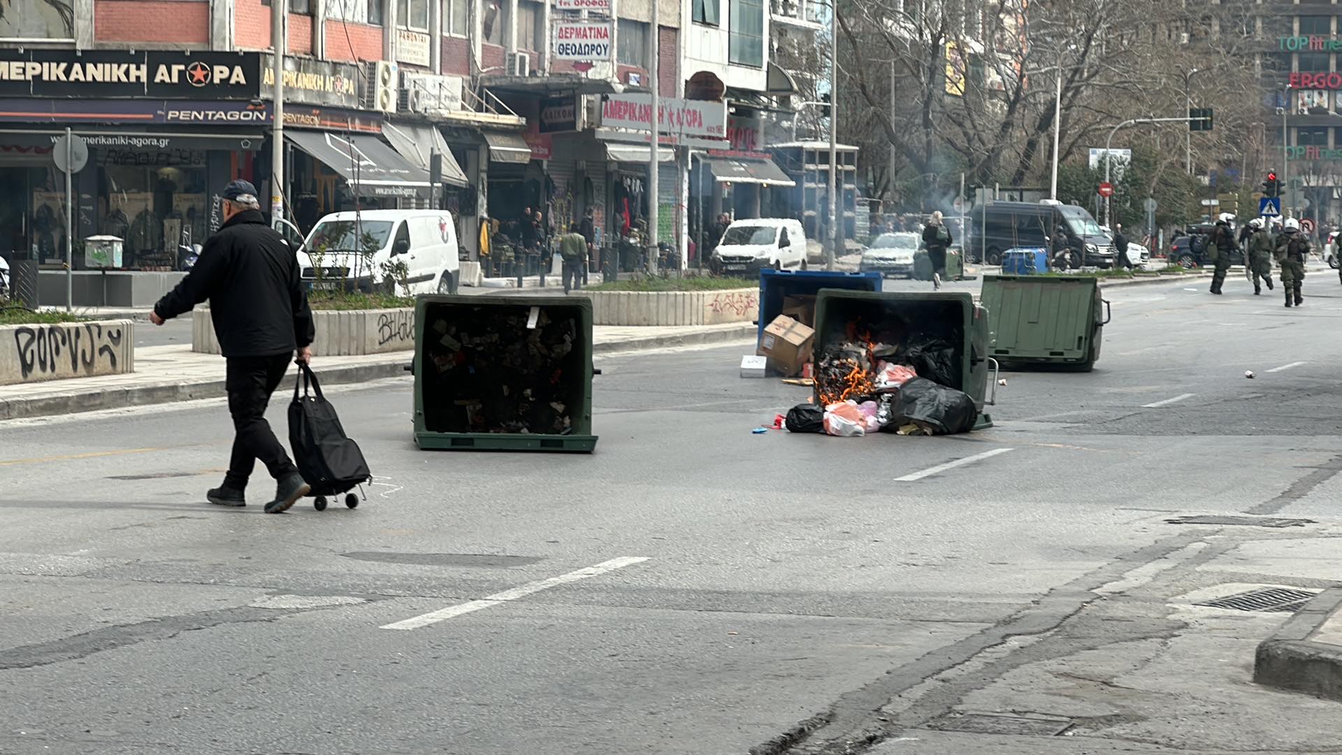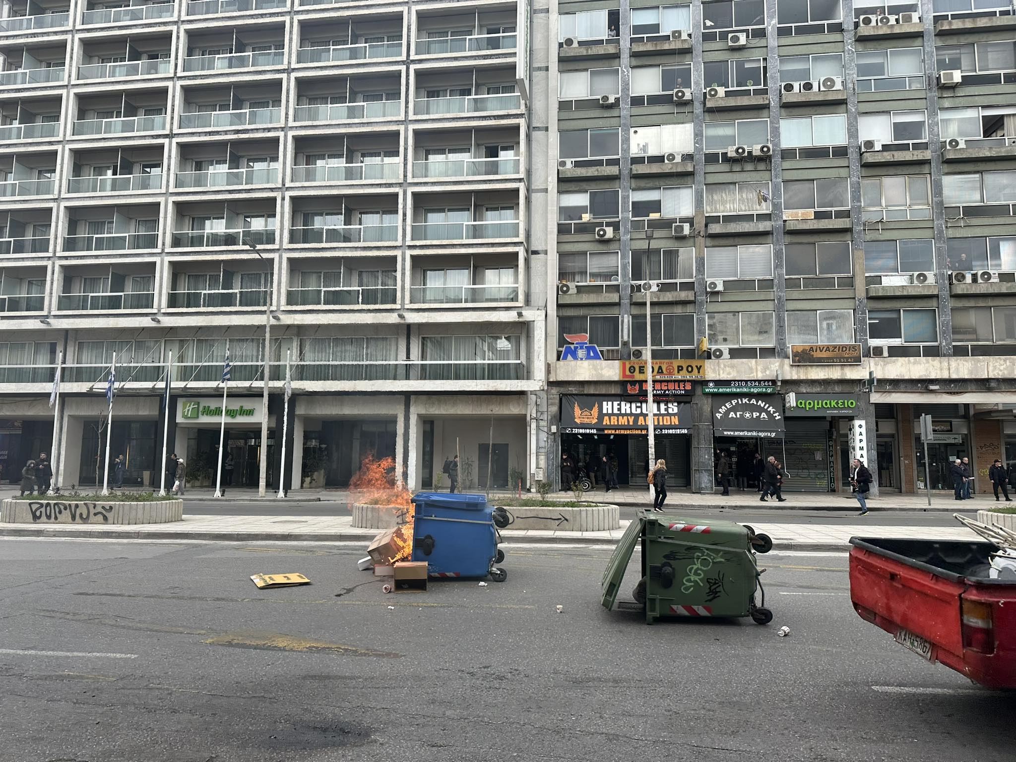 Ένταση σημειώθηκε έξω από τον ΟΣΕ κατά τη διάρκεια των πορειών με αφορμή την 24ωρη απεργία την ημέρα επετείου μνήμης των θυμάτων της σιδηροδρομικής τραγωδίας των Τεμπών.