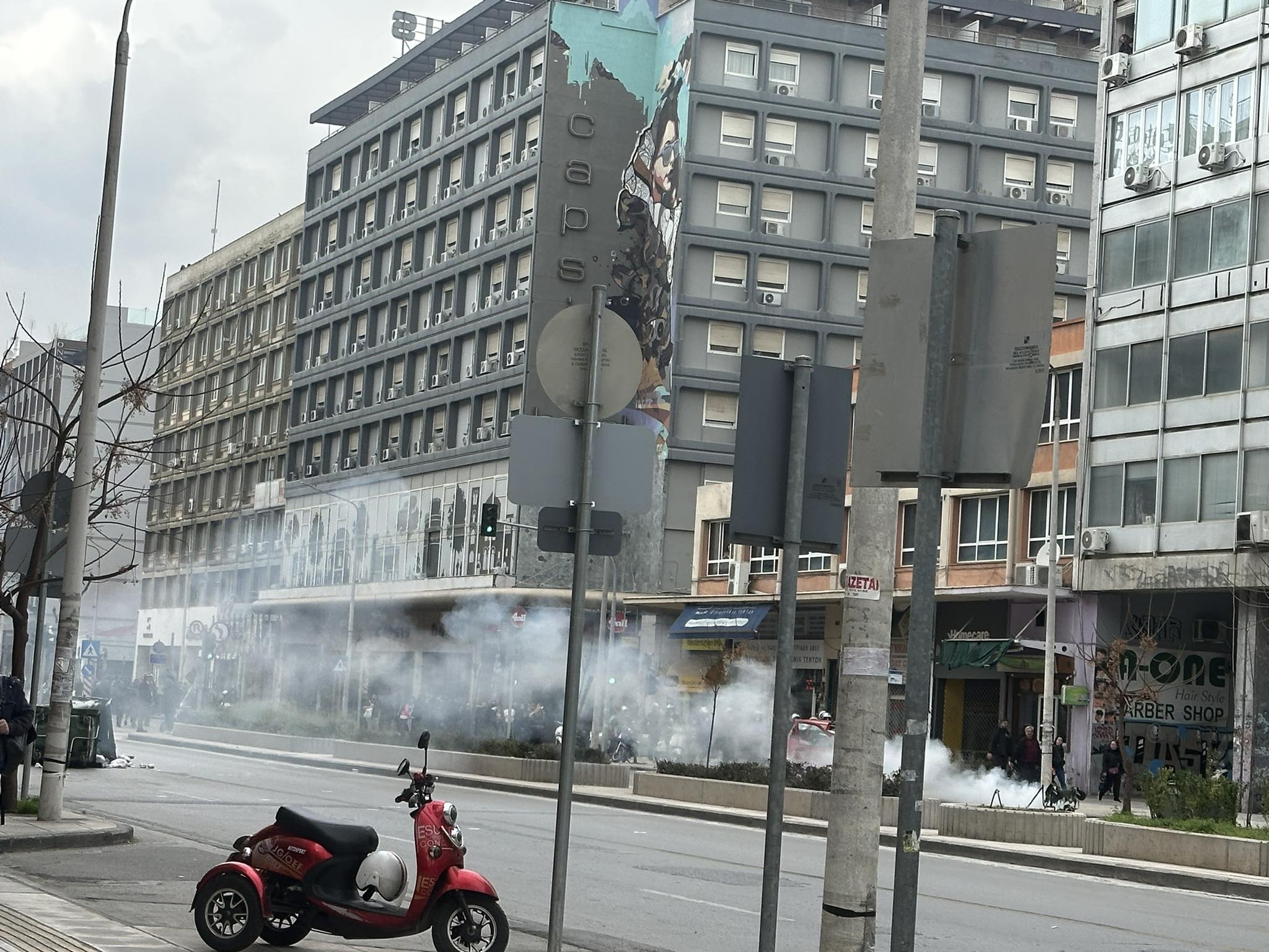 Οι αστυνομικές δυνάμεις απώθησαν το συγκεντρωμένο πλήθος προς το κέντρο της Θεσσαλονίκης.
