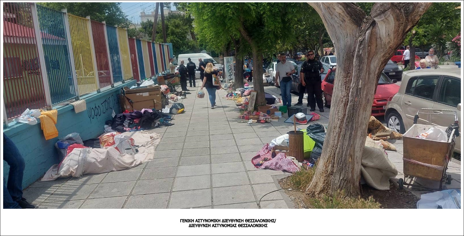 Στο πλαίσιο αυτό, χθες, 03-06-2023, αστυνομικοί διαφόρων Υπηρεσιών της Διεύθυνσης Αστυνομίας Θεσσαλονίκης πραγματοποίησαν ελέγχους για τον εντοπισμό ατόμων που ενέχονται σε εμπορία λαθραίων και απομιμητικών προϊόντων, σε λαϊκές αγορές στις περιοχές της Βούλγαρη και της Ξηροκρήνης.