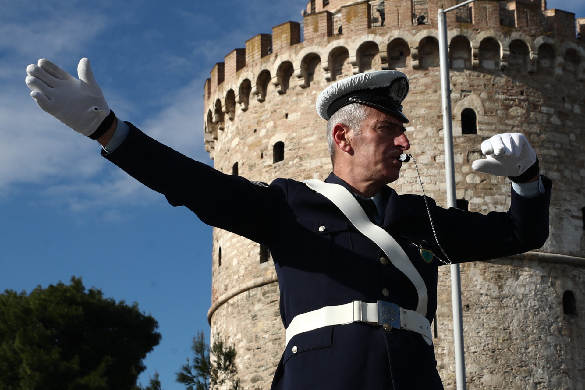 Θεσσαλονίκη: Επέστρεψε στο «βαρελάκι» ο τροχονόμος μπροστά από τον Λευκό Πύργο