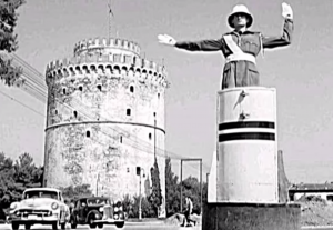 Από τις 11:30 το πρωί, ο τροχονόμος βρίσκεται στο ειδικό βάθρο/«βαρέλι» που στήνεται στο σημείο και ρυθμίζει την κυκλοφορία, όπως γινόταν παλαιότερα και αποτελούσε γνώριμο σκηνικό για πολλές γενιές Θεσσαλονικέων.