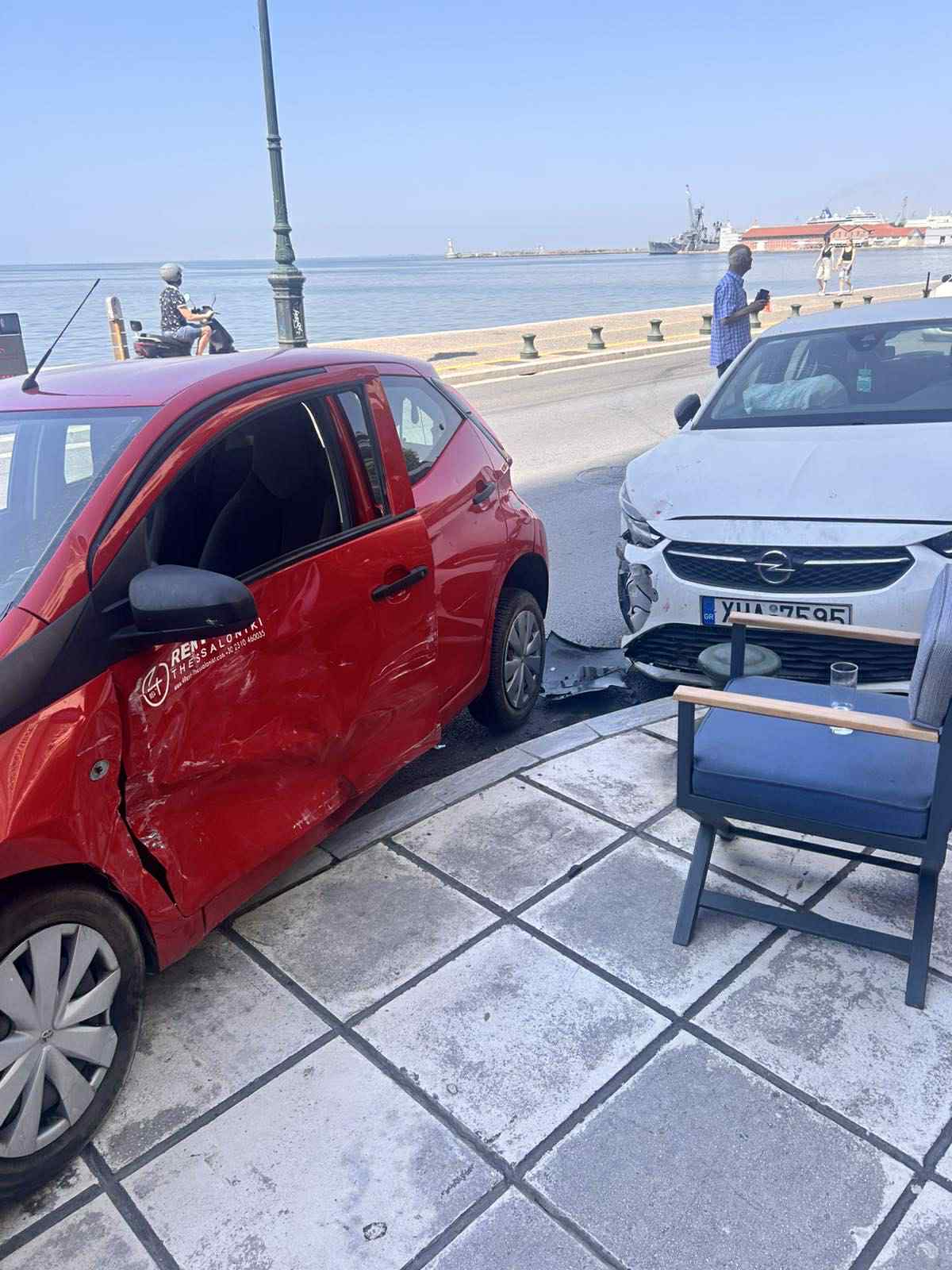 Εικόνα δύο μέρες μετά στο ίδιο σημείο! Ατύχημα για ακριβώς τον ίδιο λόγο… Το κόκκινο ΙΧ σταμάτησε λίγο πριν τα τραπέζια του μαγαζιού..