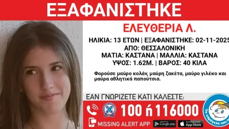 Θεσσαλονίκη: Εξαφανίστηκε 13χρονη – Λείπει από το σπίτι της από χθες