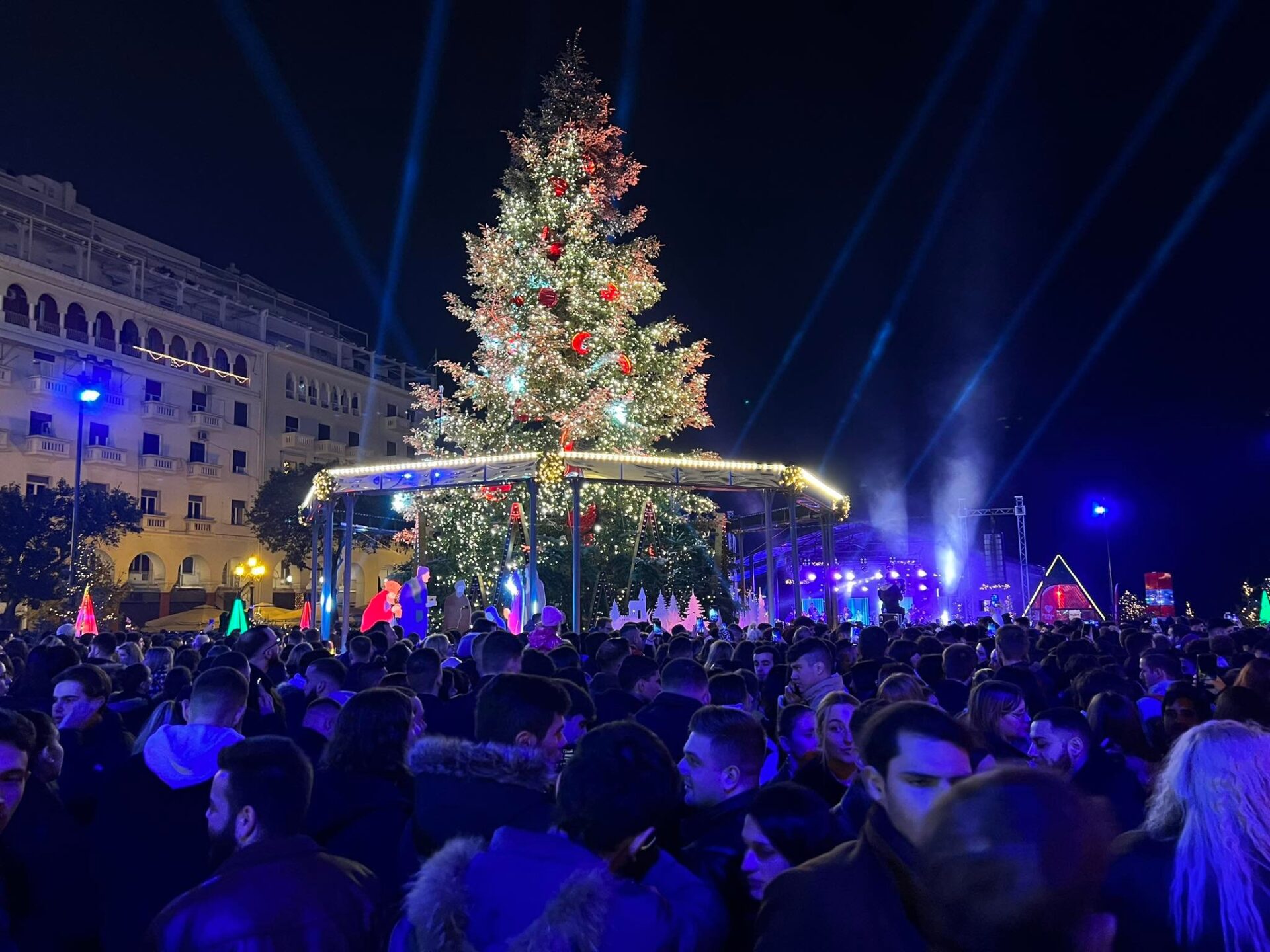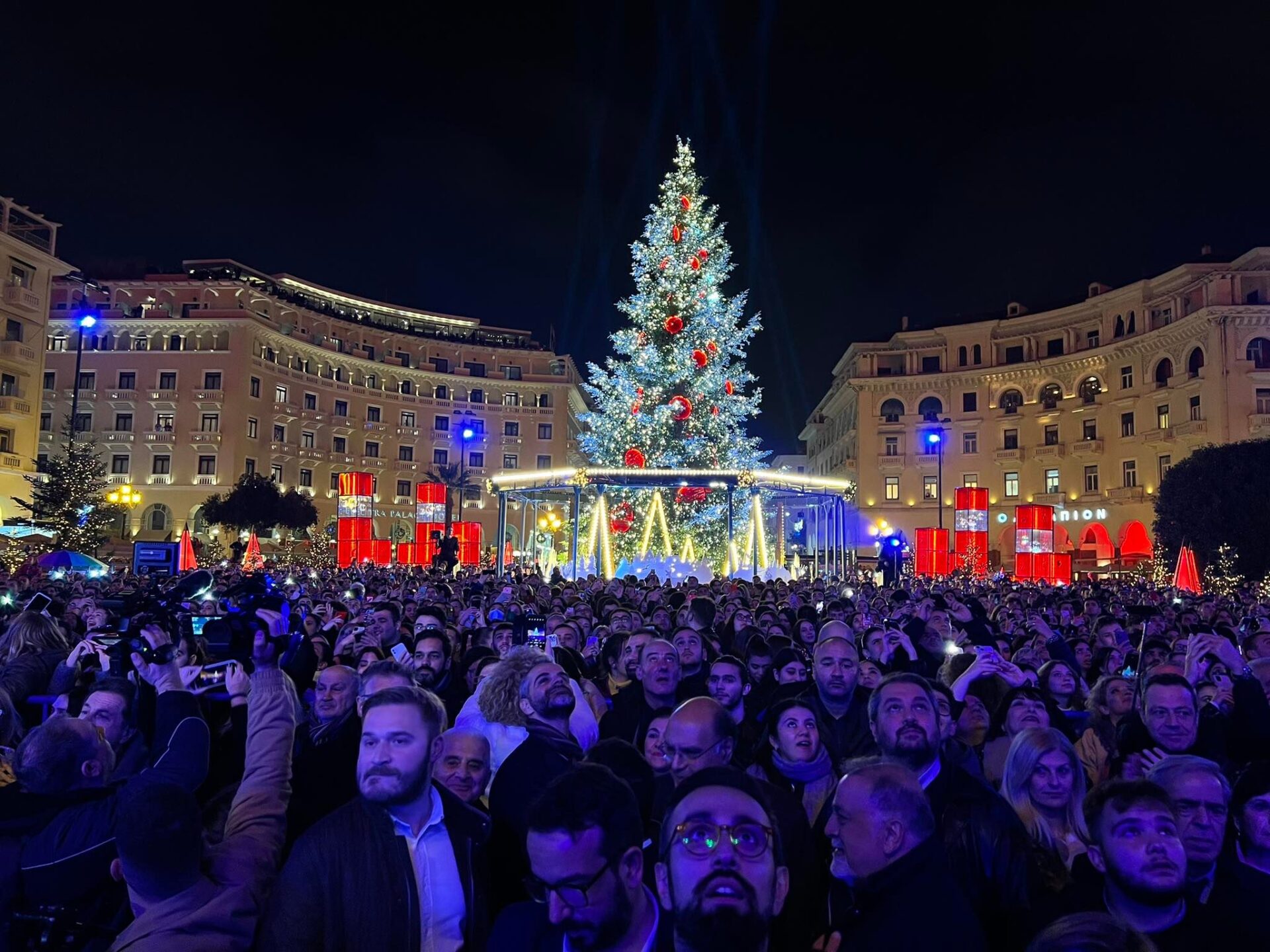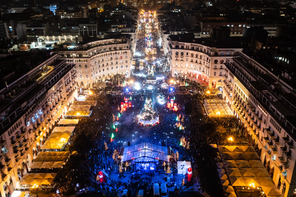 Θεσσαλονίκη: Φωταγωγήθηκε το χριστουγεννιάτικο δέντρο στην Πλ. Αριστοτέλους