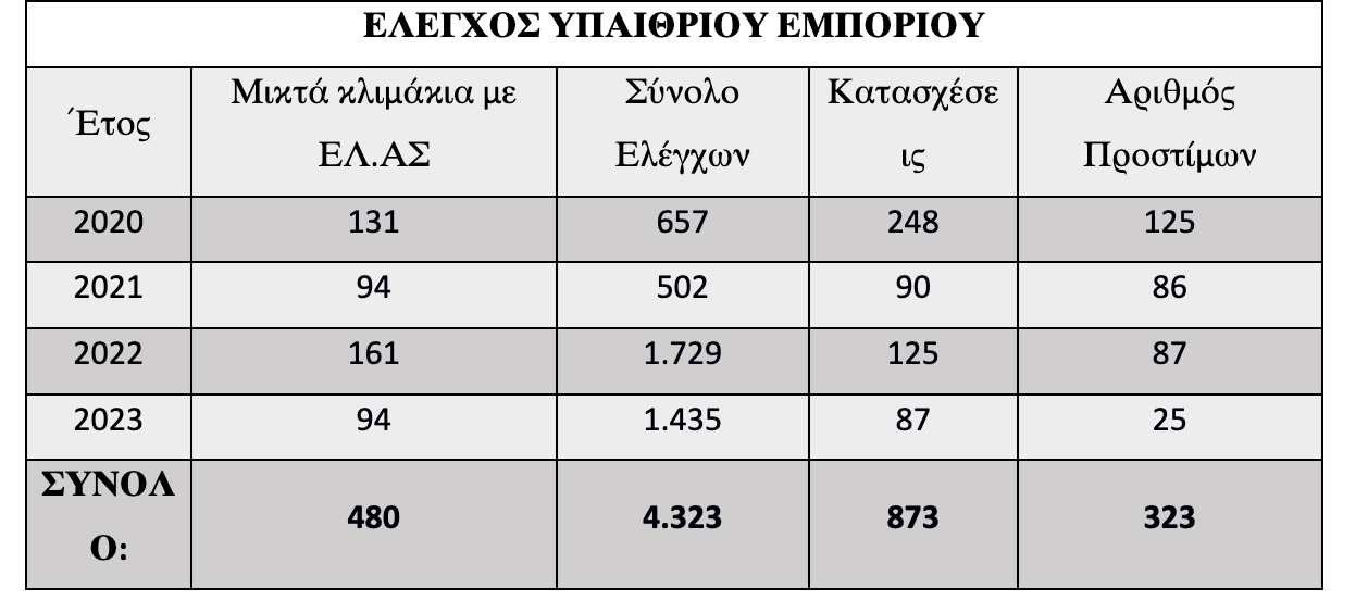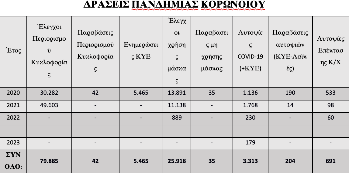 Συνοπτικά, τα στατιστικά δράσης κατά το διάστημα 01.01.2020 – 30.11.2023, έχουν ως εξής: