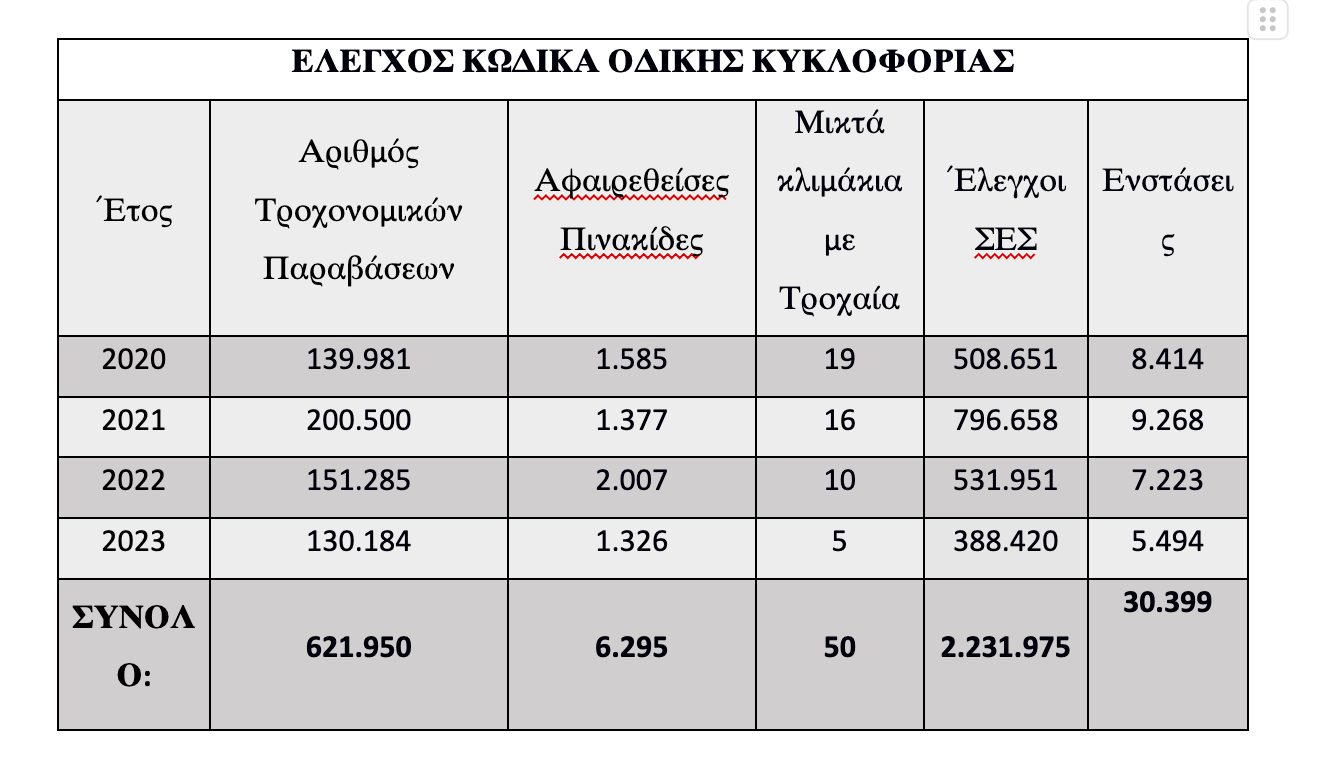 - Ακυρώθηκαν 227.942 παραβάσεις ΚΟΚ, σύμφωνα με τον Ν. 5027/2023.