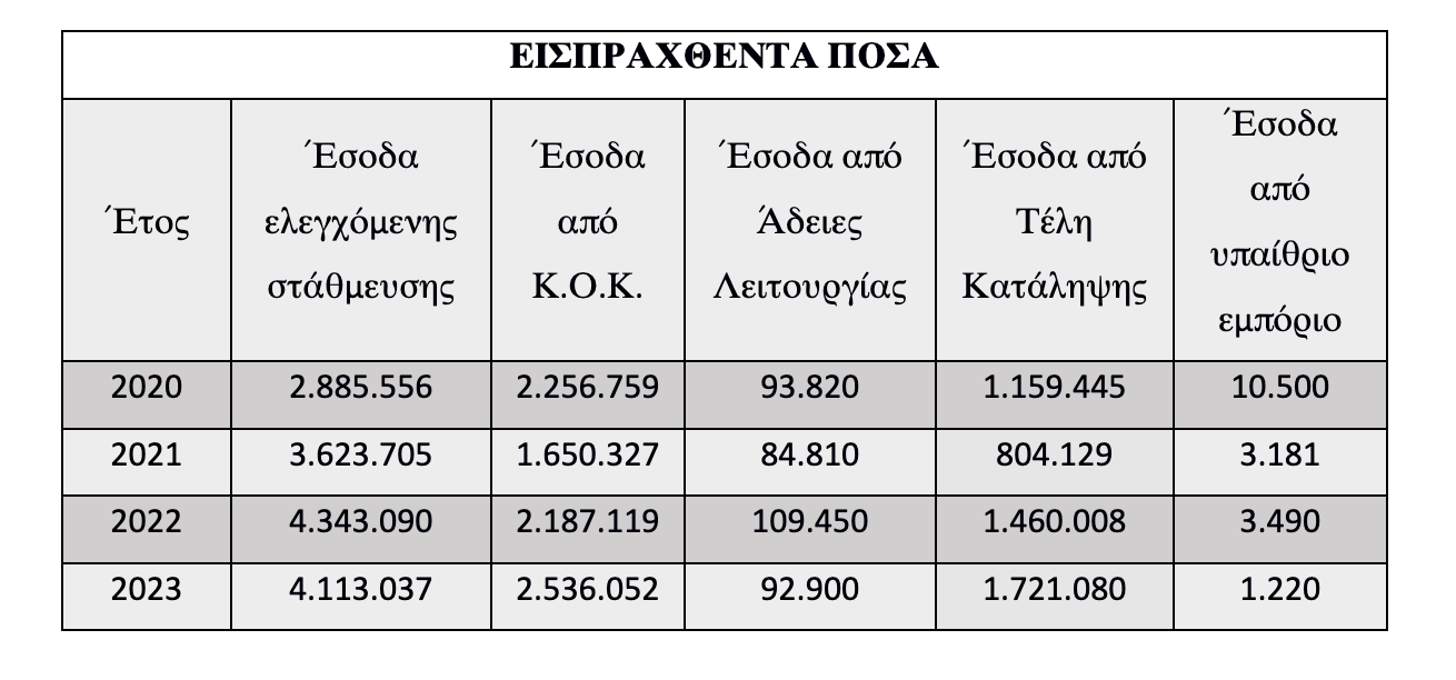 - Έσοδα από Τέλη Κατάληψης: 5.144.664 €