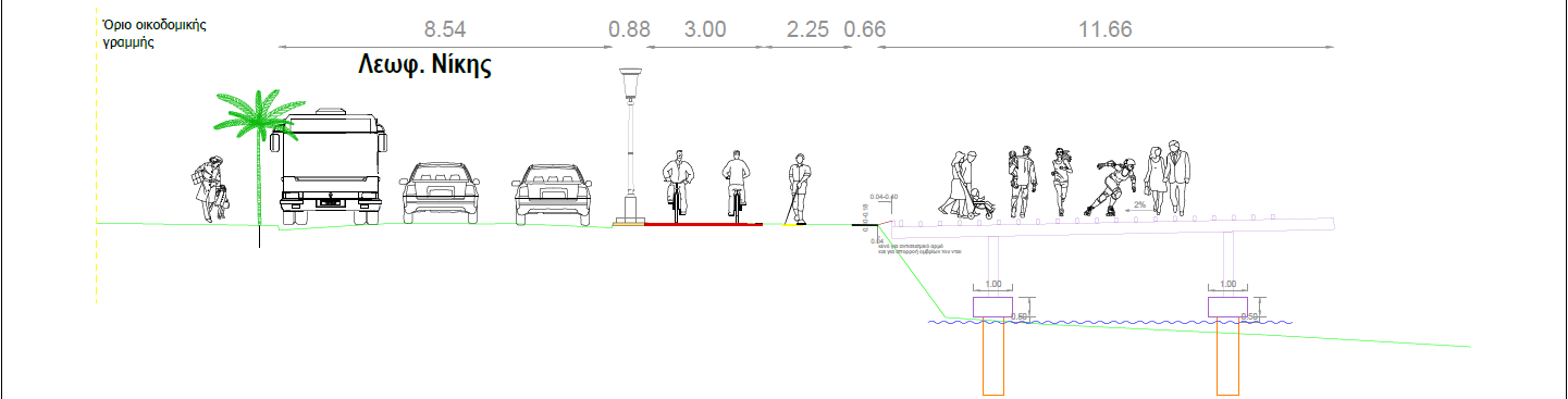 - Ποδηλατόδρομος αμφίδρομης κίνησης, μήκους 1.100 m.