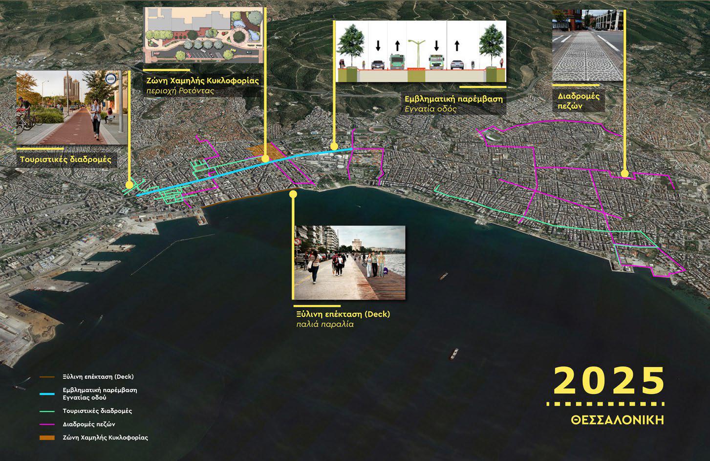 Ο Δήμος Θεσσαλονίκης, λαμβάνοντας υπόψη τη σύνθετη φύση του έργου και επιθυμώντας την υλοποίηση ενός έργου που θα χαίρει γενικής αποδοχής προκήρυξε το 2022 Αρχιτεκτονικό Διαγωνισμό Ιδεών, με στόχο τη διατύπωση ιδεών που να εξασφαλίζουν σχεδιασμό υψηλής ποιότητας, πρωτότυπο αρχιτεκτονικό χαρακτήρα και ταυτότητα, που θα εναρμονίζονται με την κλίμακα, τα αστικά χαρακτηριστικά και τα λοιπά δεδομένα του ευρύτερου χώρου και θα συνδυάζονται με τεκμηρίωση ως προς τον προτεινόμενο τρόπο κατασκευής και την εν γένει λειτουργία, επιλύοντας παράλληλα τη συνύπαρξη μιας επαρκούς ποδηλατικής διαδρομής με έναν διευρυμένο χώρο πεζών κατά μήκος του παραλιακού μετώπου.