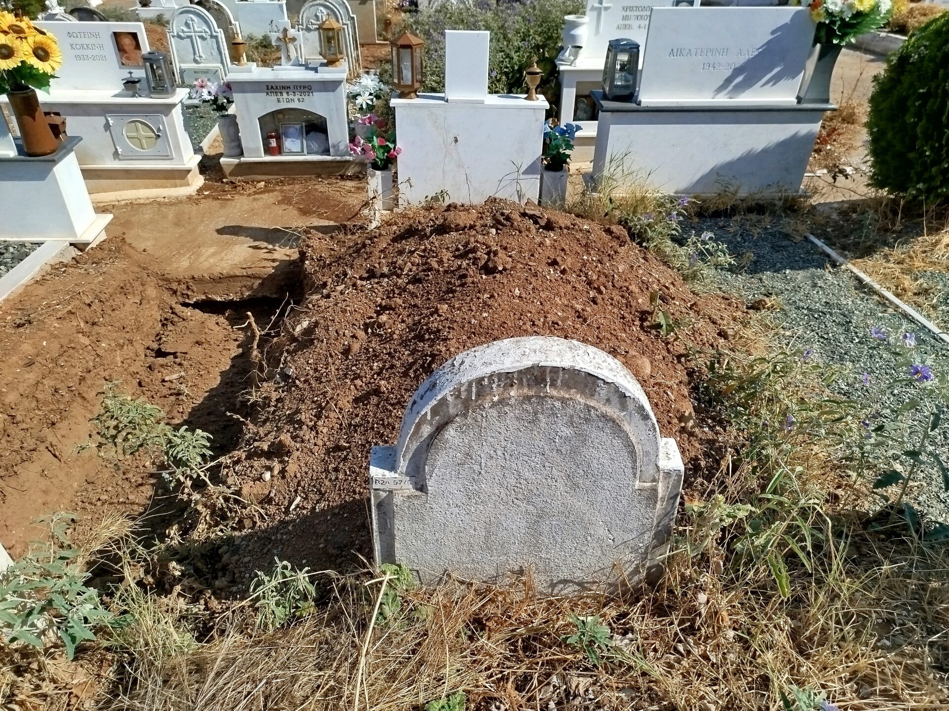 Καταγγελία πραγματοποίησε ο κ. Κώστας Κατσαΐτης στην Parallaxi, ο οποίος εντόπισε τον τάφο συγγενικού του προσώπου, καλυμμένο ολοκληρωτικά με χώμα, λόγω της εκταφής του διπλανού τάφου.