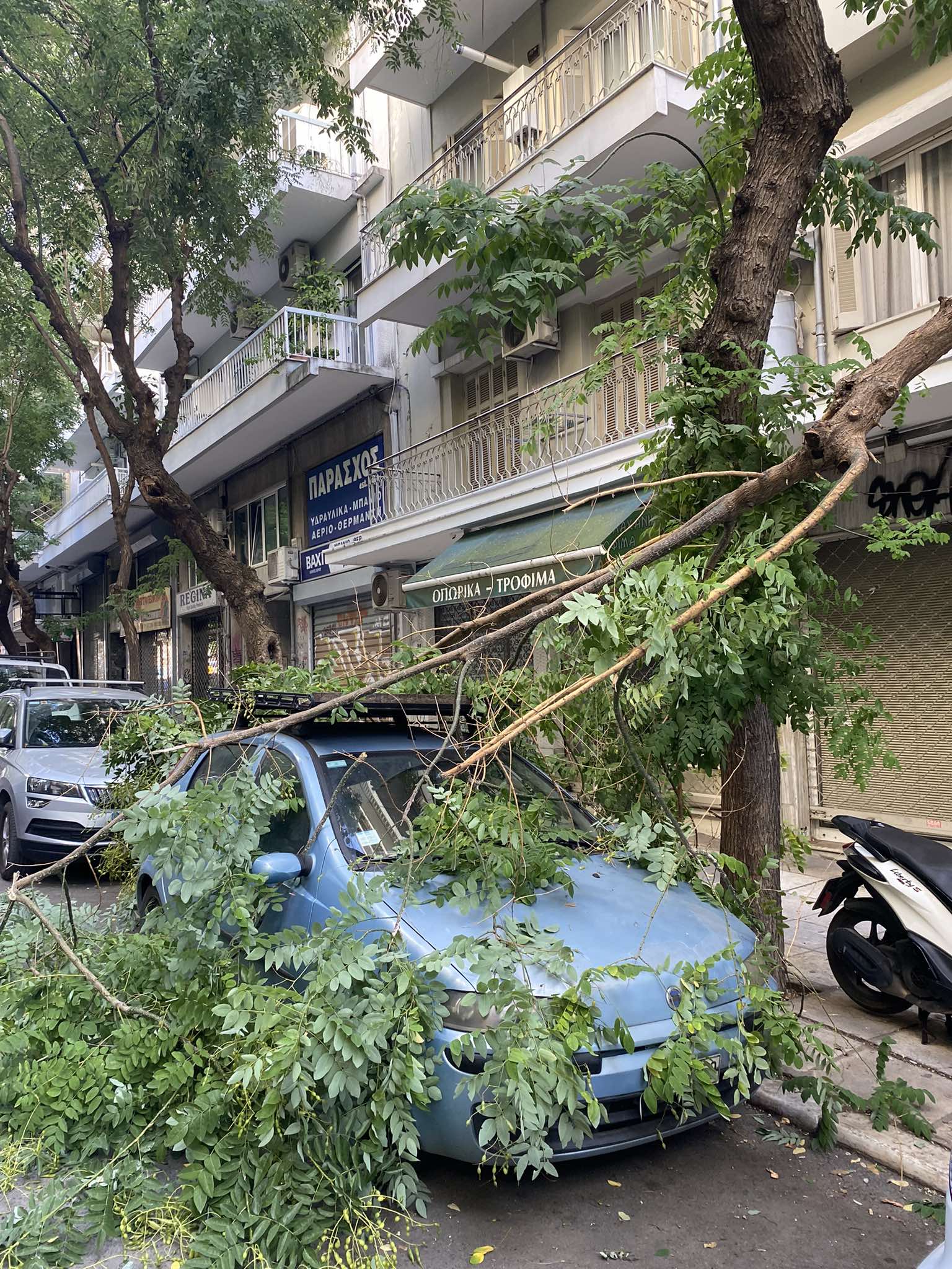 Ένα κλαδί δέντρου ξεριζώθηκε από τον αέρα, με αποτέλεσμα να πέσει πάνω σε αυτοκίνητο στο κέντρο της Θεσσαλονίκης.