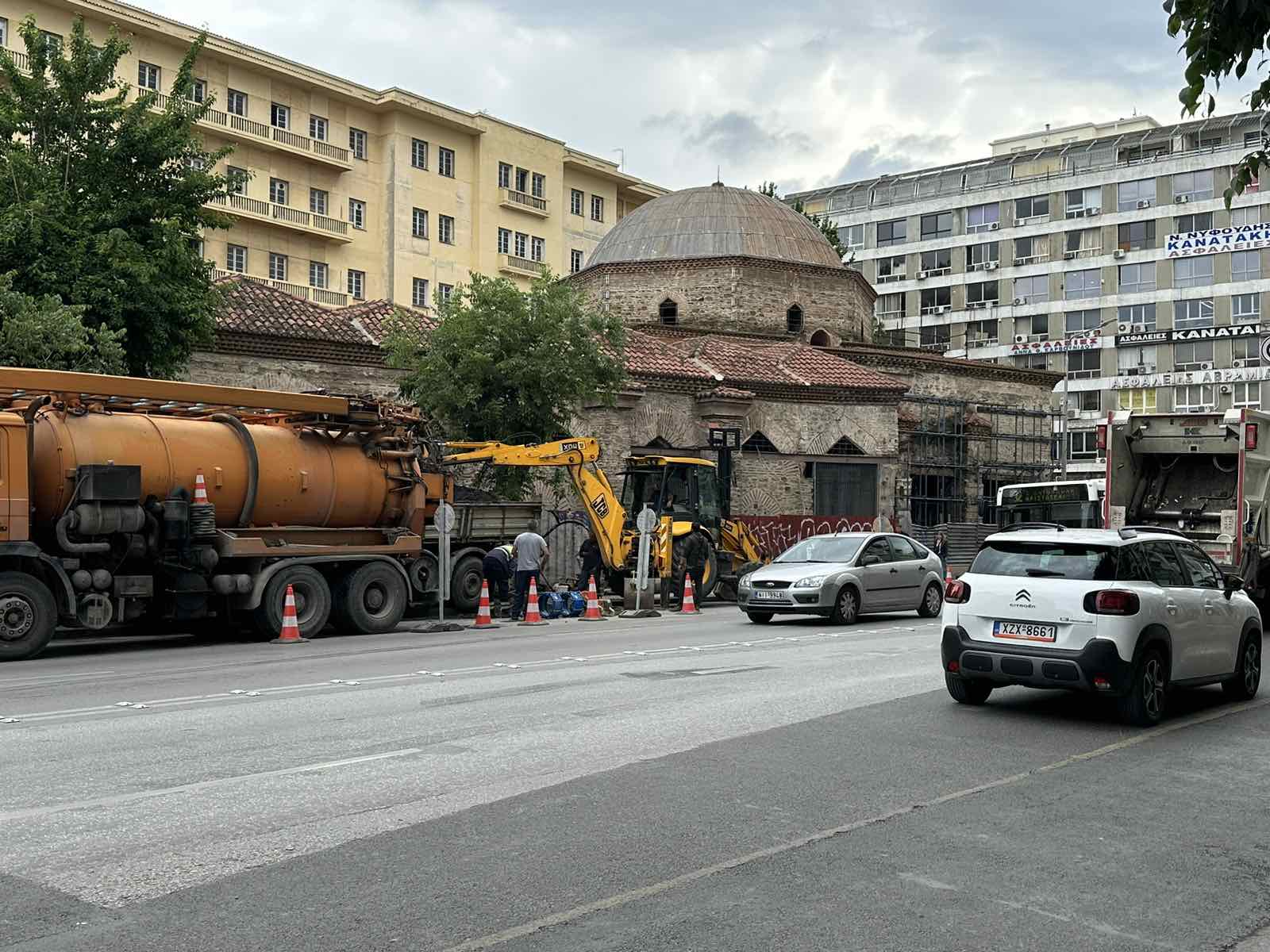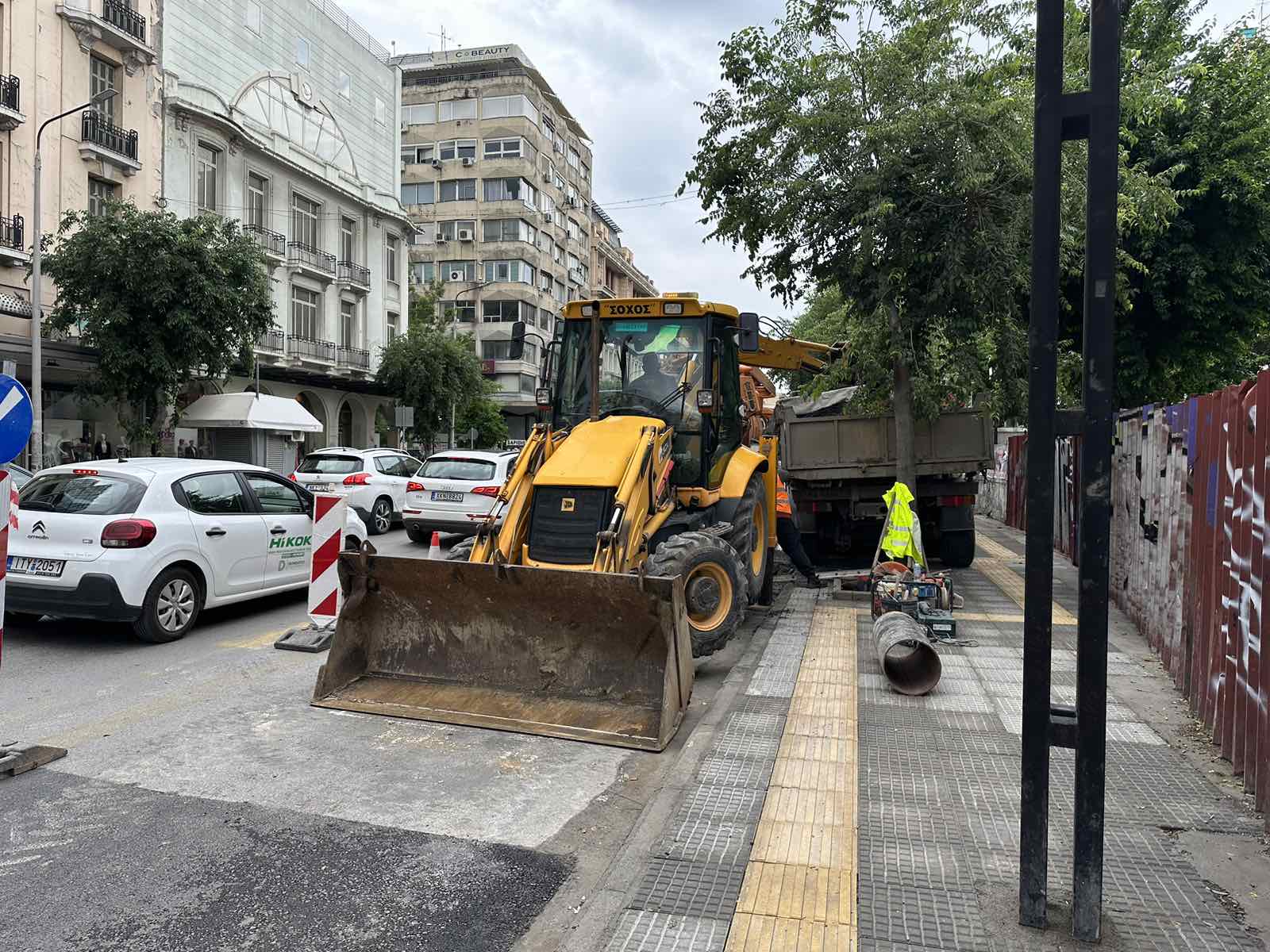 Κλειστό είναι το δεξί ρεύμα κυκλοφορίας της οδού Εγνατίας στο κέντρο της Θεσσαλονίκης.