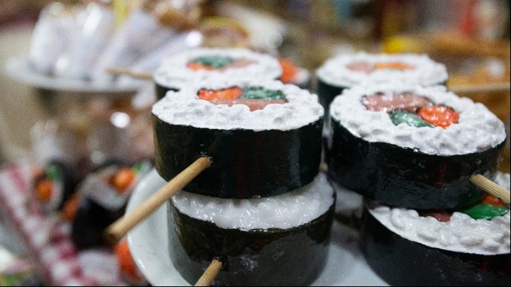 Λαμπάδες, τενεκεδάκια με ελαιόλαδο, σούσι μπρικ σε μπολάκι, πίτα-γύρος και Barbie. Σοκολατένια πρόβατα με χειροποίητα marshmallows, γεμιστά αβγά με καραμέλα σε φωλιά κότας, μίνι πολύχρωμα αβγά ορτυκιού και σοκολατένιες αβγοθήκες γεμιστές με πασχαλινά αβγά, τσουρέκια απλά αλλά και με άφθονη σοκολάτα σε περίτεχνα σχέδια, συνθέτουν ένα εντυπωσιακό πασχαλινό σκηνικό στις βιτρίνες των καταστημάτων της Θεσσαλονίκης.