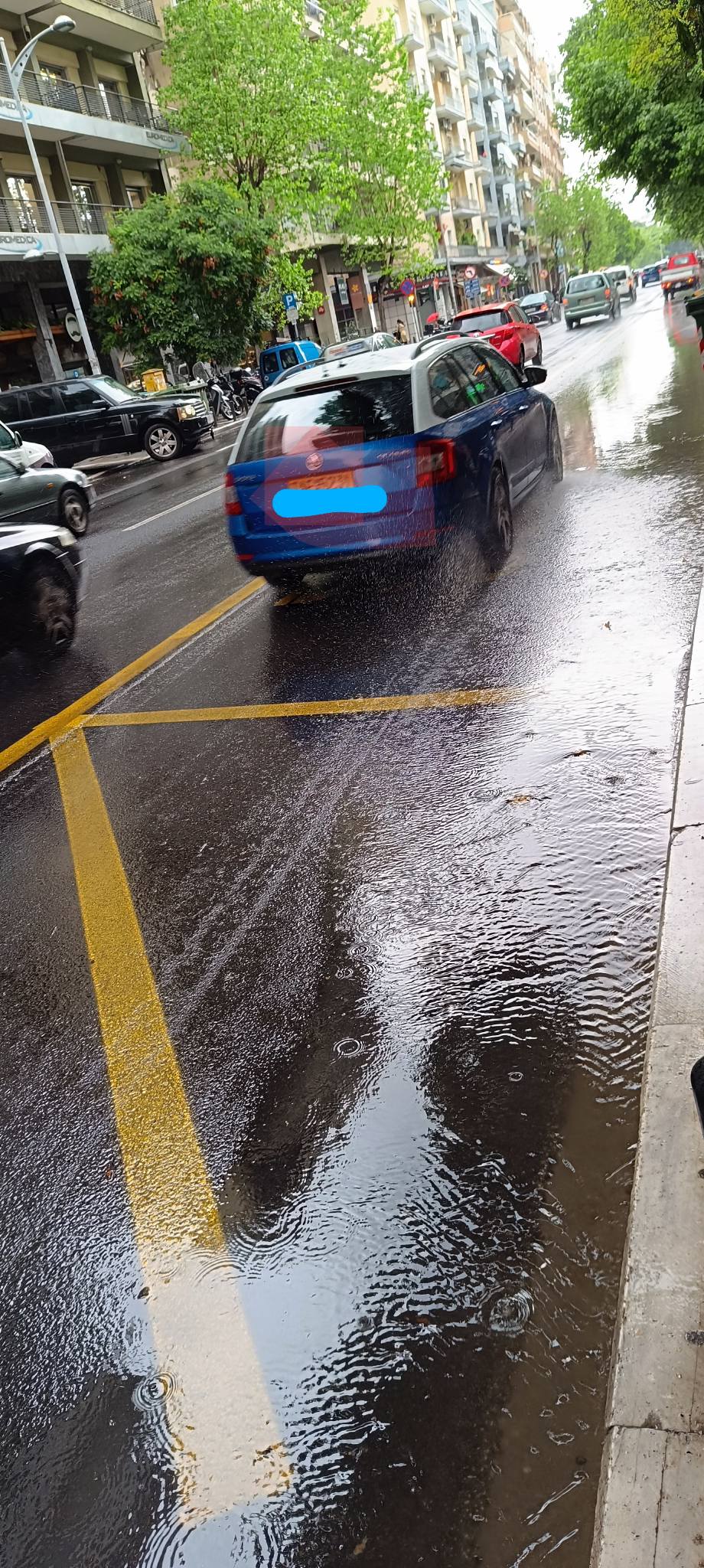 Θεσσαλονίκη: «Λίμνες» στην πρόσφατα ασφαλτοδρωμημένη Βασιλέως Γεωργίου