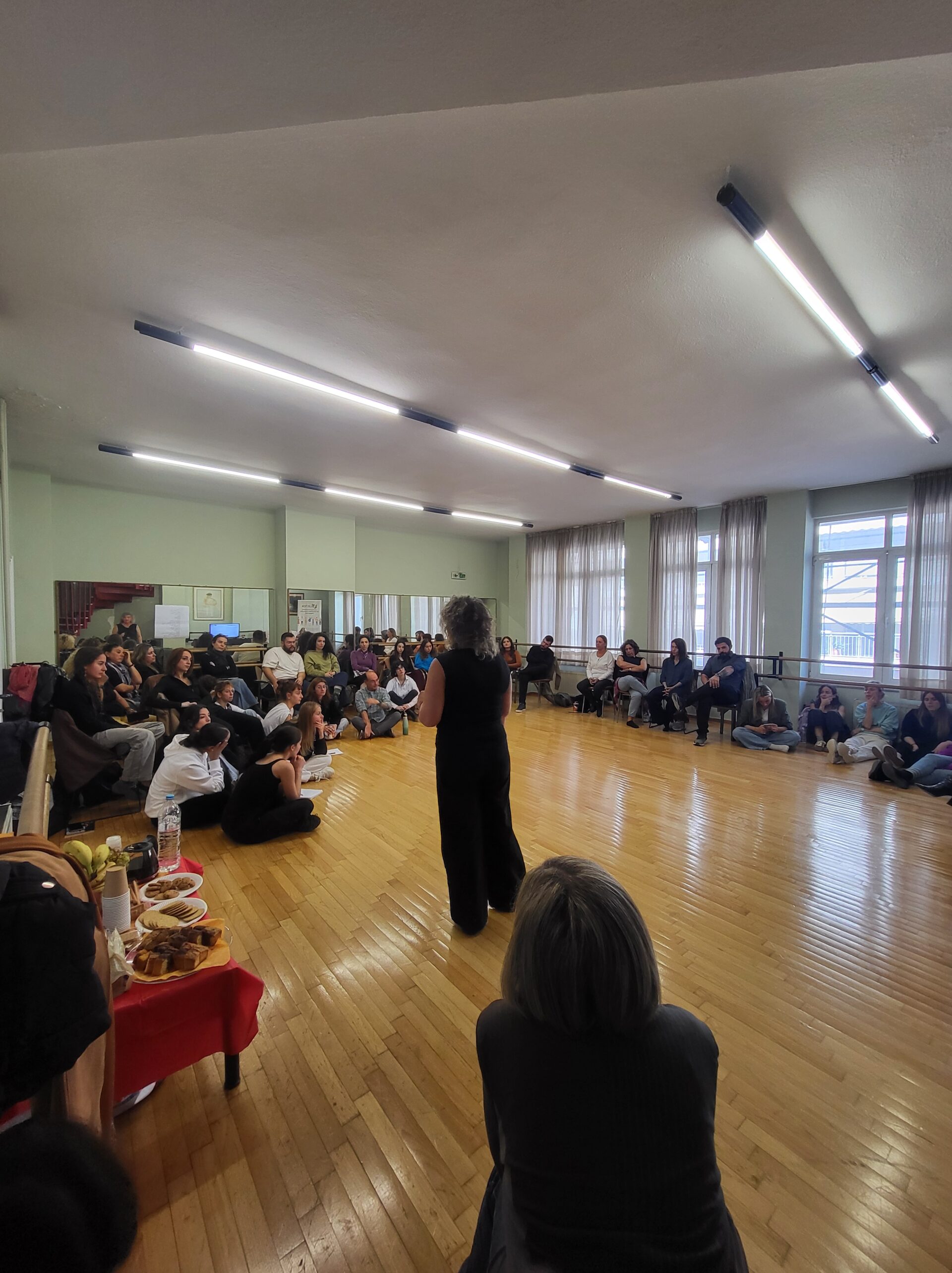 Στην επιμορφωτική συνάντηση για το τραύμα και τις ψυχολογικές πρώτες βοήθειες συμμετείχαν πολλές δασκάλες χορού και σπουδάστριες στην Ανώτερη Επαγγελματική Σχολή Χορού του Δήμου Θεσσαλονίκης. Έδειξαν μεγάλο ενδιαφέρον για το θέμα, καθώς δουλεύουν με παιδιά και νέους και τους είναι σημαντικό να μπορούν να αναγνωρίσουν ορατά και αόρατα σημάδια τραύματος και αντιδράσεις που υποδηλώνουν αυξημένη πίεση ή κρίση και να γνωρίζουν τρόπους παρέμβασης και υποστήριξης.