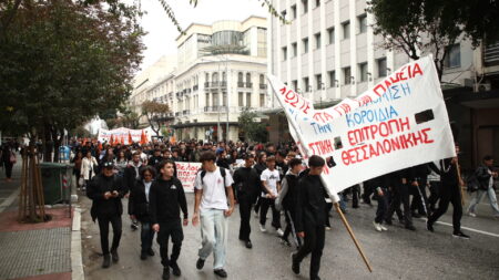 Στο κέντρο της Αθήνας, μαθητικά συμβούλια, φοιτητικοί σύλλογοι και ενώσεις γονέων ενώνουν τις φωνές τους ζητώντας περισσότερη χρηματοδότηση, μόνιμες προσλήψεις εκπαιδευτικών και αναβάθμιση των σχολικών υποδομών.