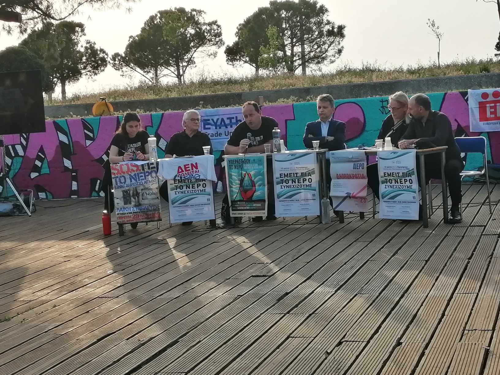 Μεταξύ των ομιλητών, παρευρέθηκαν: ο Γιώργος Αρχοντόπουλος, Πρόεδρος του Σωματείου Εργαζομένων ΕΥΑΘ, και Κώστας Βουδούρης, καθηγητής ΑΠΘ, μέλος Δ.Σ. Κέντρου Νερού της UNESCO. Ανάμεσα στους επίτιμους καλεσμένους ήταν ο Claus Kittsteiner, Μέλος Δικτύου Berliner Wassertisch, από την Γερμανία και η Isabelle Plichon, εκλεγμένο μέλος του “Δημοτικού Συμβουλίου της Λυών για το Νερό”, από την Γαλλία.