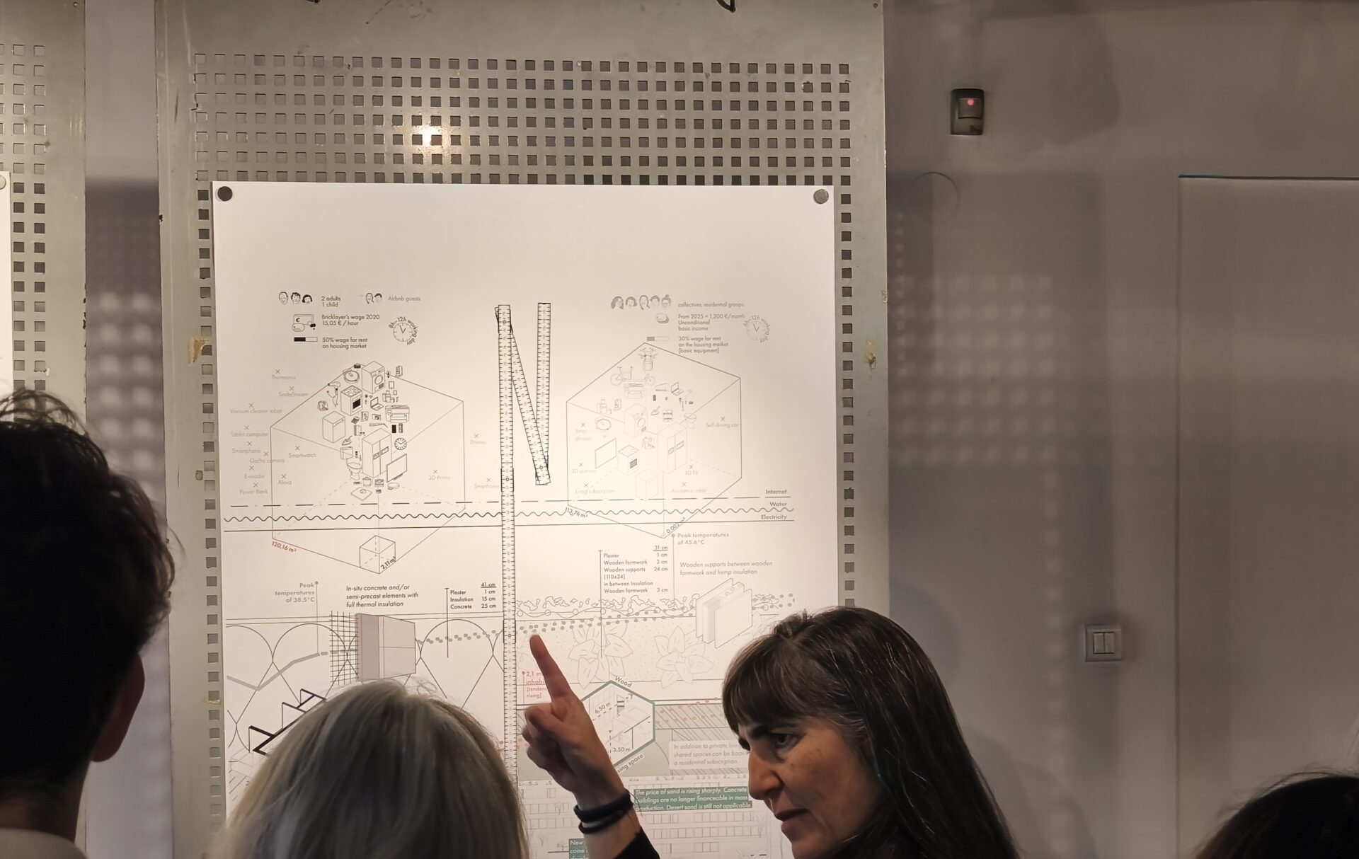 Στην παράλληλη έκθεση, που είχαμε την ευκαιρία να δούμε, κυριαρχούν οι φωτογραφικές και γραφιστικές απεικονίσεις σε ταμπλό πληροφοριών για την αγορά κατοικίας στη Βιέννη αλλά και τη Θεσσαλονίκη, καθώς στόχος είναι η «συνομιλία» των δύο πόλεων γύρω από το ζήτημα.