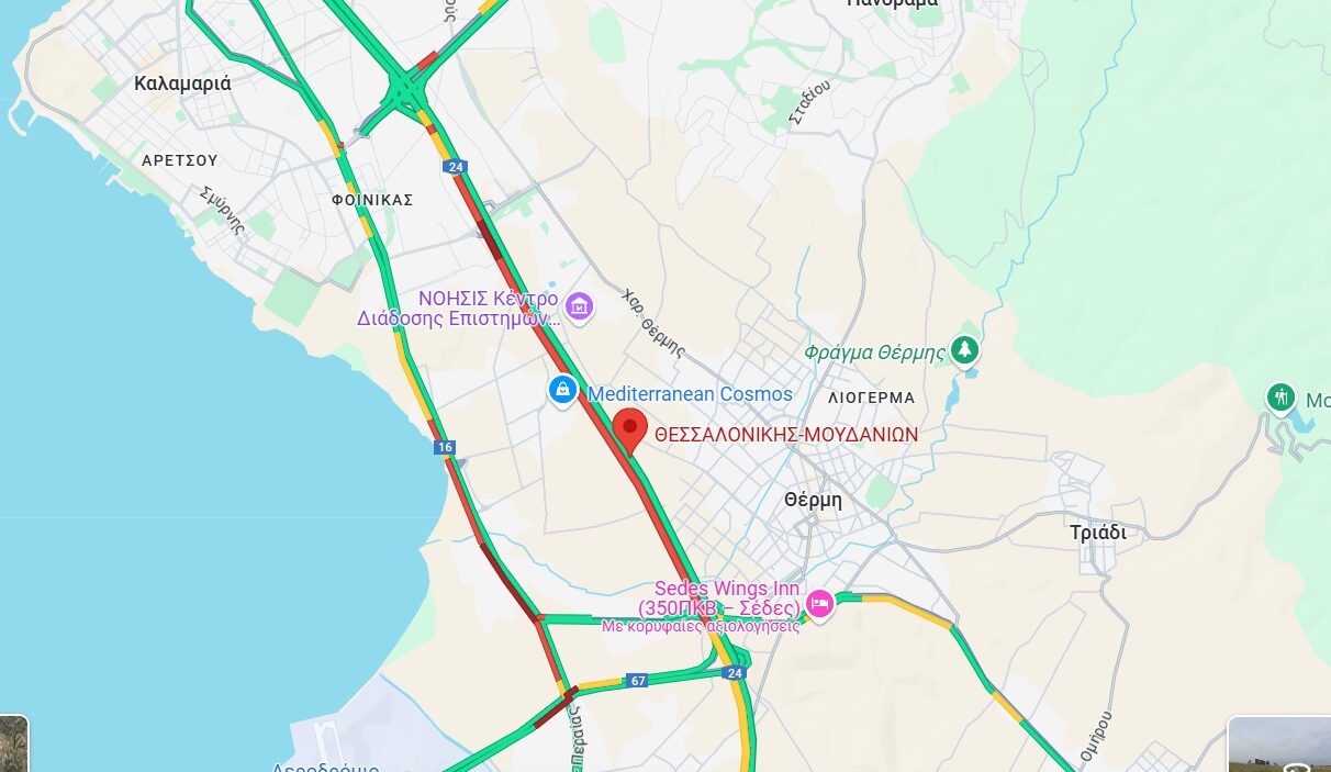 Σύμφωνα με τις μέχρι τώρα πληροφορίες, παρατηρείται κυκλοφοριακή συμφόρηση στην Εθνική Οδό Θεσσαλονίκης – Μουδανιών, από το ύψος του κόμβου Περιφερειακού μέχρι και την έξοδο για Νέο Ρύσιο.