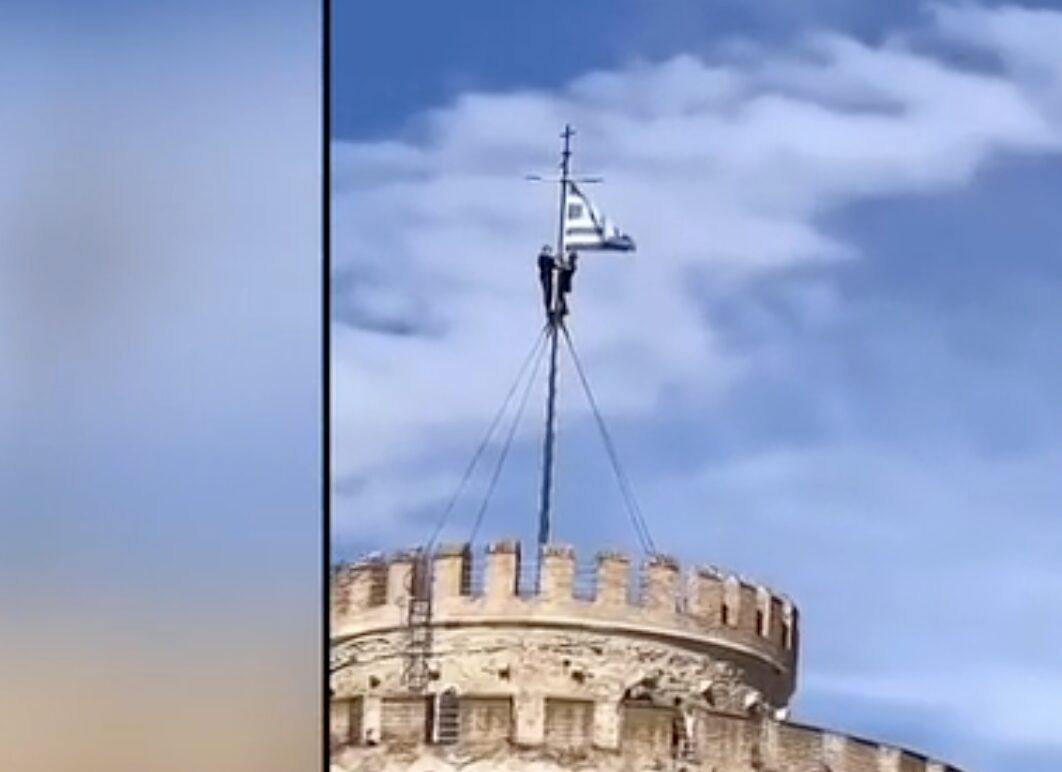 Θεσσαλονίκη: Νεαροί… κρεμάστηκαν από την σημαία του Λευκού Πύργου για ένα βίντεο!