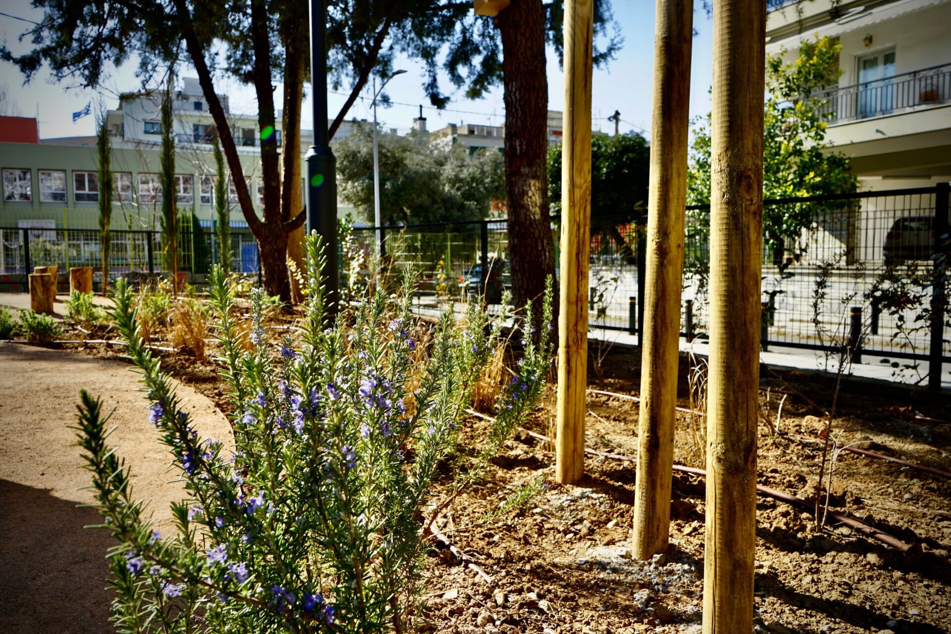 Στο νέο πάρκο τσέπης, έκτασης περίπου 350 τ.μ., προστέθηκαν περίπου 350 δέντρα και φυτά.
