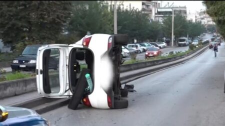 Σοβαρό τροχαίο ατύχημα σημειώθηκε το πρωί της Παρασκευής (31/10) στην οδό Αγίων Πάντων, στη Θεσσαλονίκη, όταν ένα Ι.Χ. αυτοκίνητο ανετράπη στη μέση του δρόμου, προκαλώντας αναστάτωση στους διερχόμενους οδηγούς και προσωρινό μπλόκο στην κυκλοφορία.