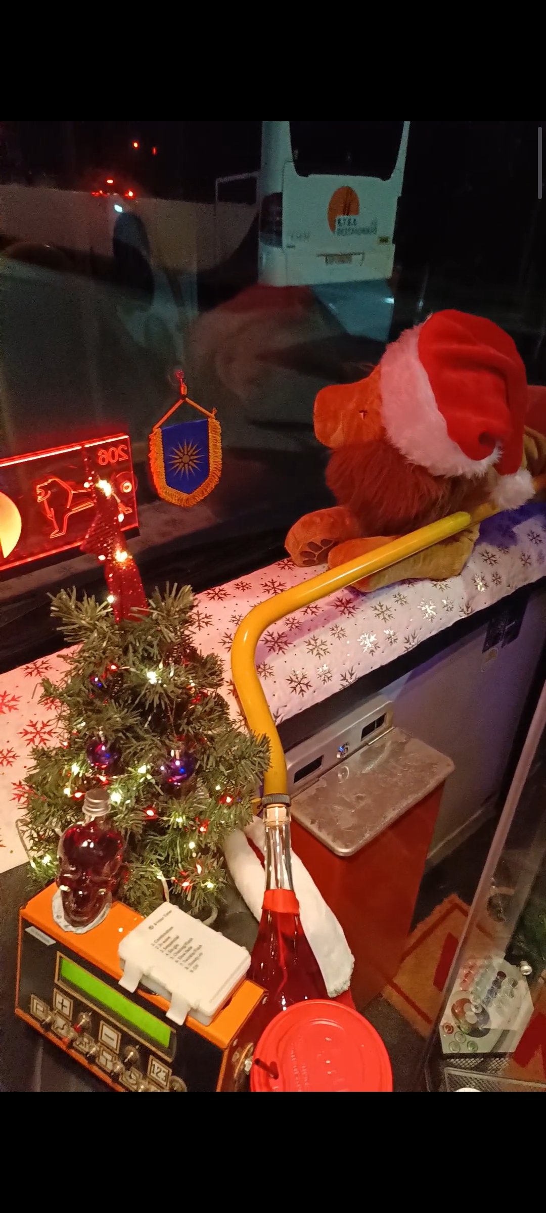 Έλατο, γιρλάντες, λαμπιόνια, κρεμασμένες μπότες, μέχρι και πατάκι εισόδου με καλωσόρισμα για τα Χριστούγεννα, έχουν «ντύσει» όχι κάποιο σπίτι, ένα γραφείο ή κατάστημα, αλλά ένα αστικό λεωφορείο.