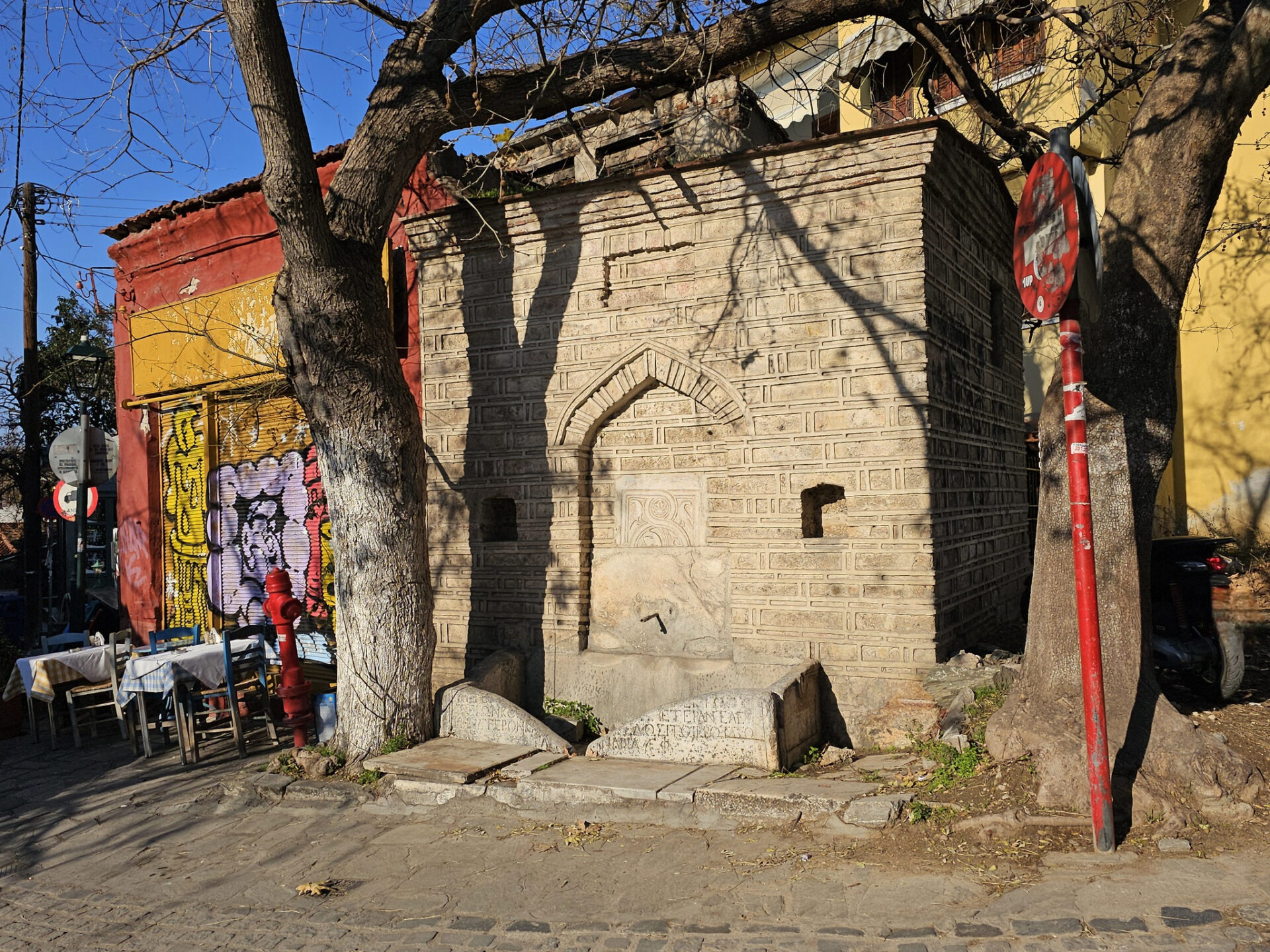 Στη νοτιοδυτική γωνία του οικοπέδου, όπου και το Ιμαρέτ, βρίσκεται η ερειπωμένη κρήνη με δύο κύριες όψεις προς την οδό Κασσάνδρου και τον περιβάλλοντα χώρο του μνημείου με τον οποίο κατασκευάστηκε ταυτόχρονα. Η κρήνη είναι κτισμένη με πλινθοπερίβλητο σύστημα τοιχοποιίας, με πελεκητούς λίθους και ενδιάμεσες σειρές πλίνθων, φέρει σε κάθε κύρια όψη της τυφλό αψίδωμα, που πλαισιώνεται από δύο μικρές κόγχες και πιθανόν κατέληγε σε ισλαμίζον τόξο. Η κρήνη θωρείται μια από τις δίδυμες κρήνες της πόλης και διαθέτει μικρή κεντρική δεξαμενή. Το μουσουλμανικό αυτό τέμενος (Alaça Imaret) χρησίμευε ως πτωχοκομείο, ενώ η κρήνη εξακολούθησε επί αρκετά χρόνια να διατηρεί τη λειτουργία της.