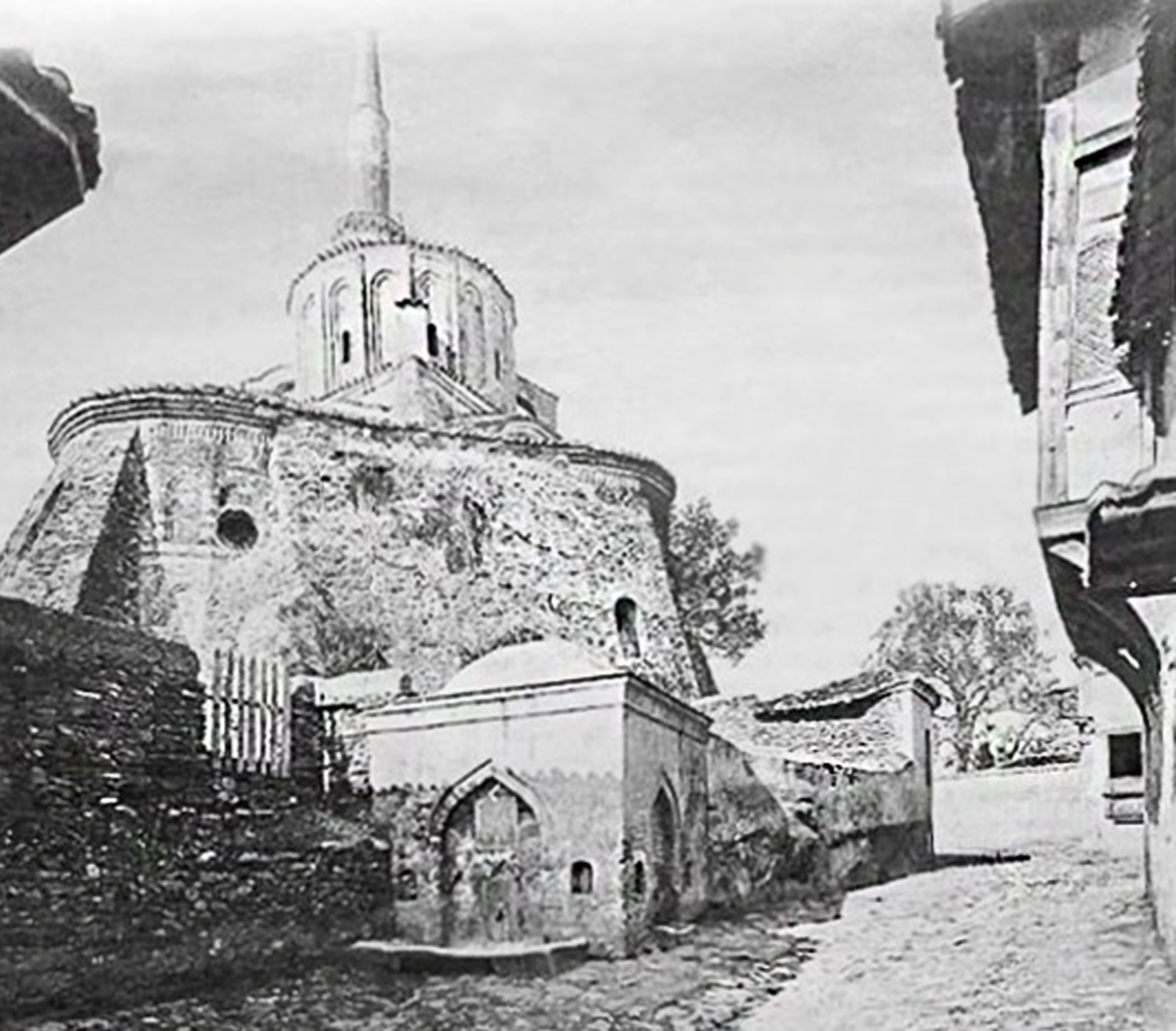 Το πρώιμο οθωμανικό τέμενος, κάτοψη αντεστραμμένου Τ με κεντρικό αίθριο, φέρει και πλάγια διαμερίσματα στη δυτική πλευρά, καθώς και κιονοστήρικτη στοά. Στον νότιο χώρο του τεμένους επί της οδού Κασσάνδρου υπάρχει κρήνη.