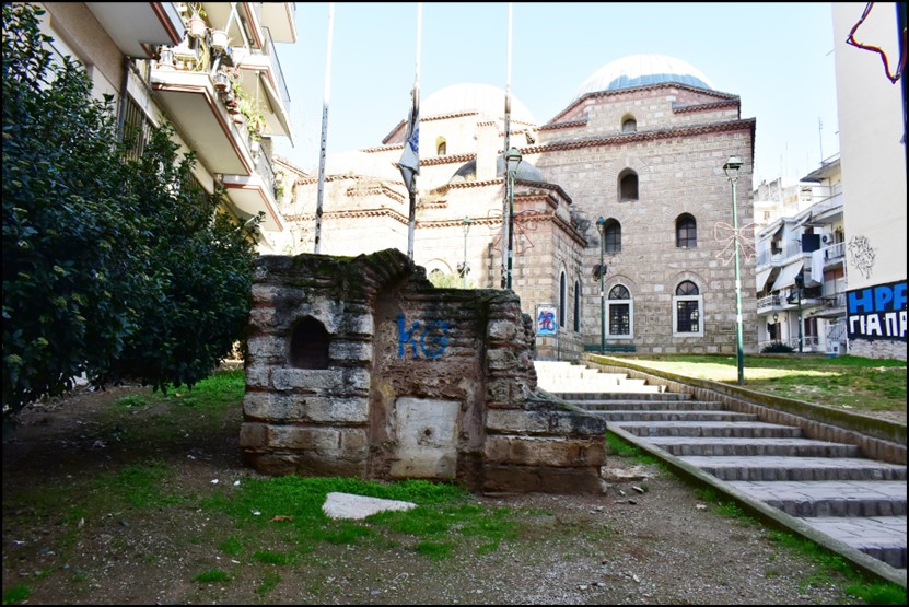 Η διάρθρωση των όψεων με βαθμιδωτά αψιδώματα και τόξα, καθώς και τα περίτεχνα κεραμοπλαστικά αποτελούν εξαιρετικό δείγμα της παλαιολόγιας αρχιτεκτονικής. Η διαδρομή μέσω της οδού Σαχίνη καταλήγει στην Πλ. Μουσχουντή, όπου διασώζεται η μνήμη παλαιάς κρήνης στη συμβολή των οδών Ολυμπιάδος και Κασσάνδρου με την ονομασία Horhor Su, από όπου κατά την ζώσα παράδοση ξεκίνησε η πυρκαγιά της Θεσσαλονίκης το 1917.