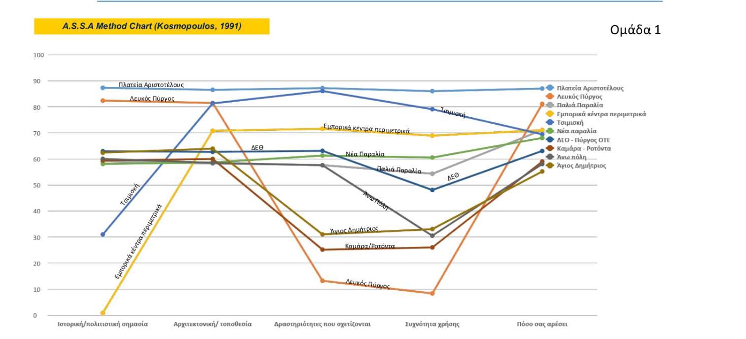 Αρχικά η έρευνα εστιάζει στα σημαντικά σημεία/μέρη/τοποθεσίες/κτίρια της πόλης και το πώς τα αξιολογούν οι Θεσσαλονικείς.