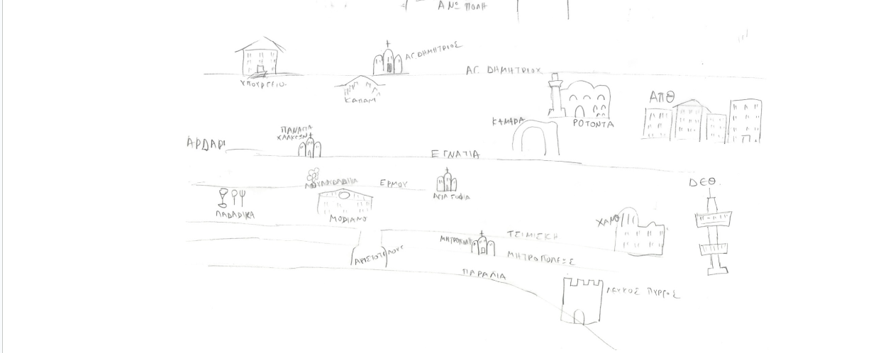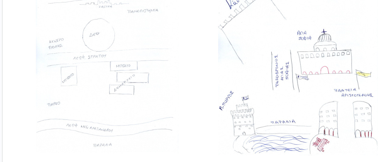 Με έναν ευρηματικό τρόπο οι Κοσμόπουλος και Κλέσκας ζητούν από τους συμμετέχοντες στην έρευνα να γίνουν δημιουργικοί και να καταγράψουν σε ένα σκίτσο, όπως το σκέφτονται αυτοί, τις γνωστές τους διαδρομές καθώς και τα σημεία που έχουν για εκείνους σημασία ή ενδιαφέρον.