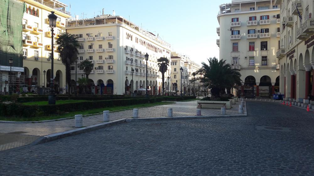 Αυτή η αίσθηση, όμως, κράτησε λίγα δευτερόλεπτα. Γιατί αυτό που με τρόμαξε ήταν η απουσία ανθρώπων στα πεζοδρόμια, στους δρόμους, στην παραλία, στην πλατεία Αριστοτέλους. Τα κλειστά καταστήματα. Ήταν 7 το απόγευμα, ημέρα Πέμπτη, μόλις 10 μέρες πριν το Πάσχα και υπό κανονικές συνθήκες το κέντρο της Θεσσαλονίκης θα έσφυζε από ζωή.
