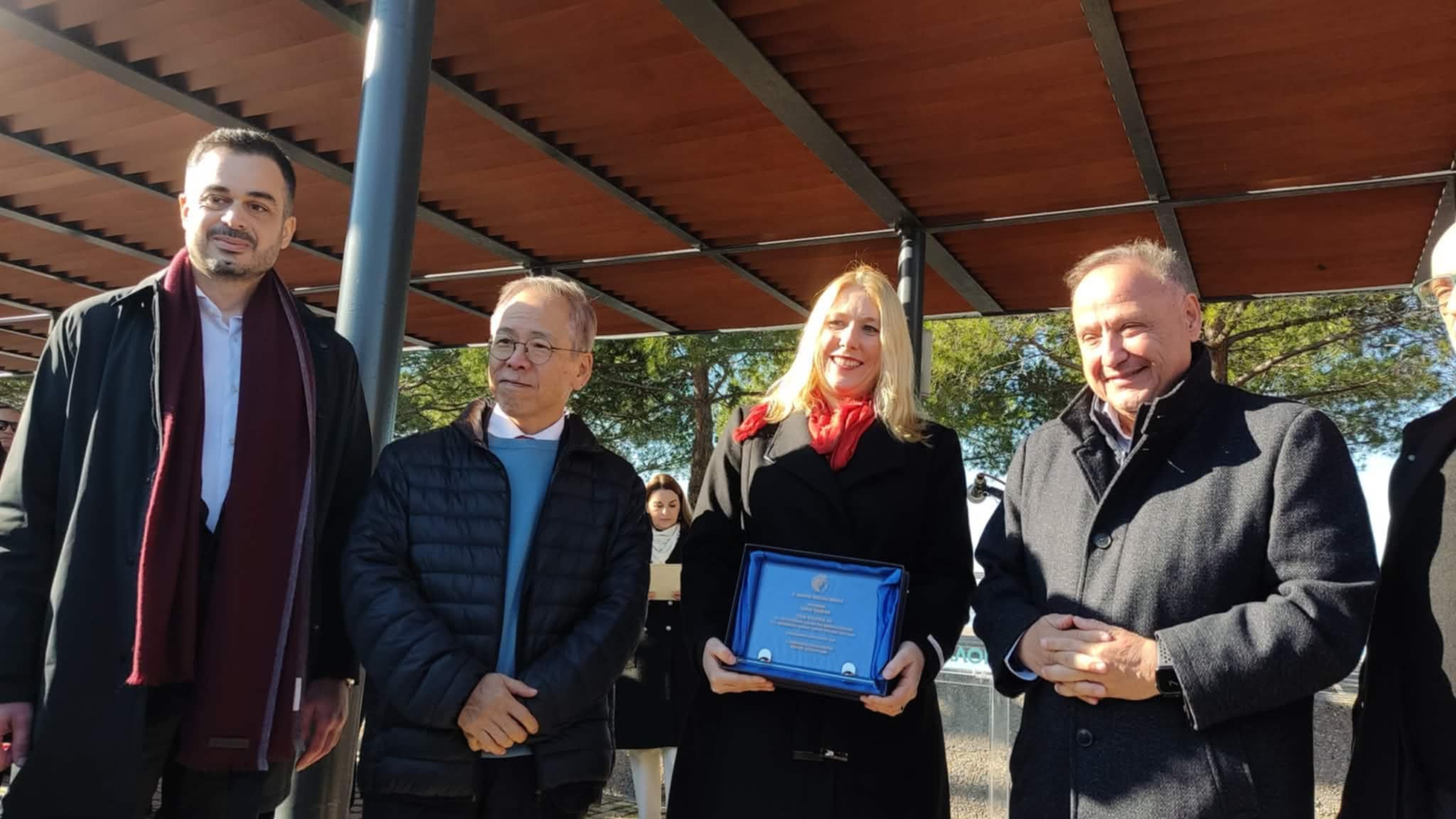 Η τελετή ολοκληρώθηκε με τον δήμαρχο, τον αντιδήμαρχο, τον πρέσβη και τα στελέχη της δωρήτριας εταιρείας να φυτεύουν συμβολικά στον χώρο μια κερασιά.
