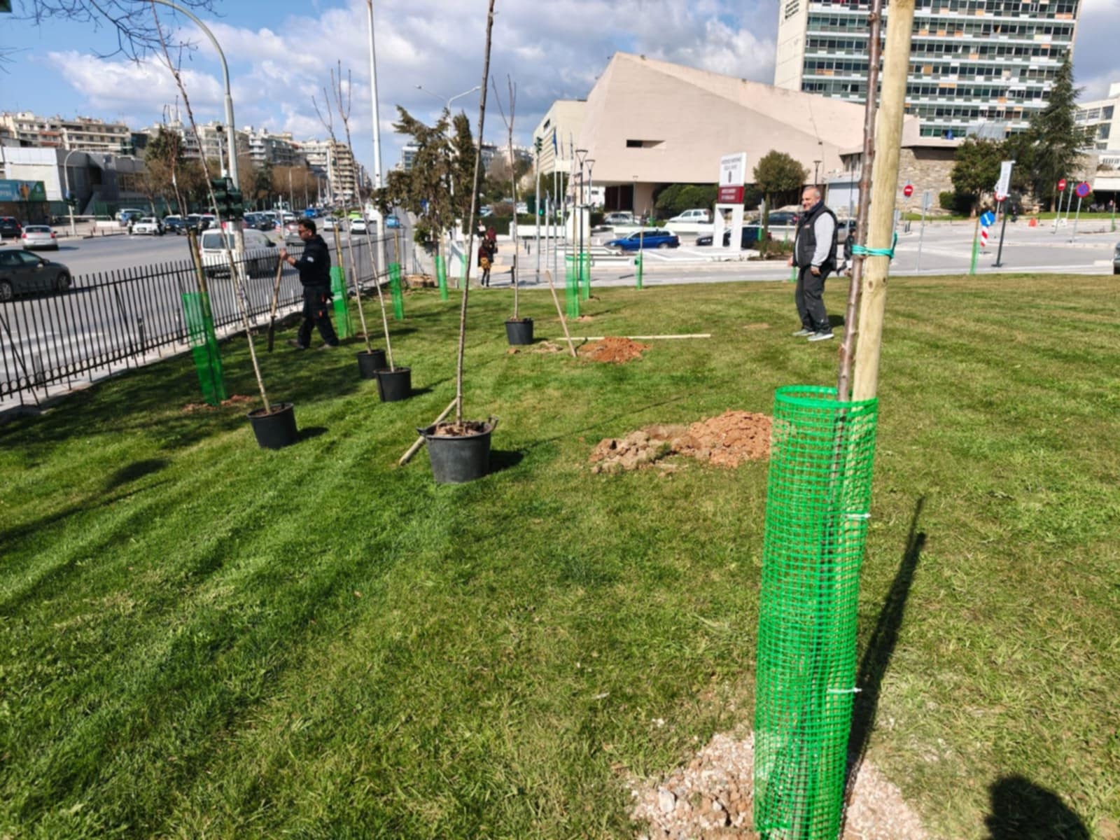 Η εκτεταμένη δενδροφύτευση πραγματοποιήθηκε το μεσημέρι παρουσία του πρύτανη του ΑΠΘ, Κυριάκου Αναστασιάδη και του δημάρχου Θεσσαλονίκης, Στέλιου Αγγελούδη.