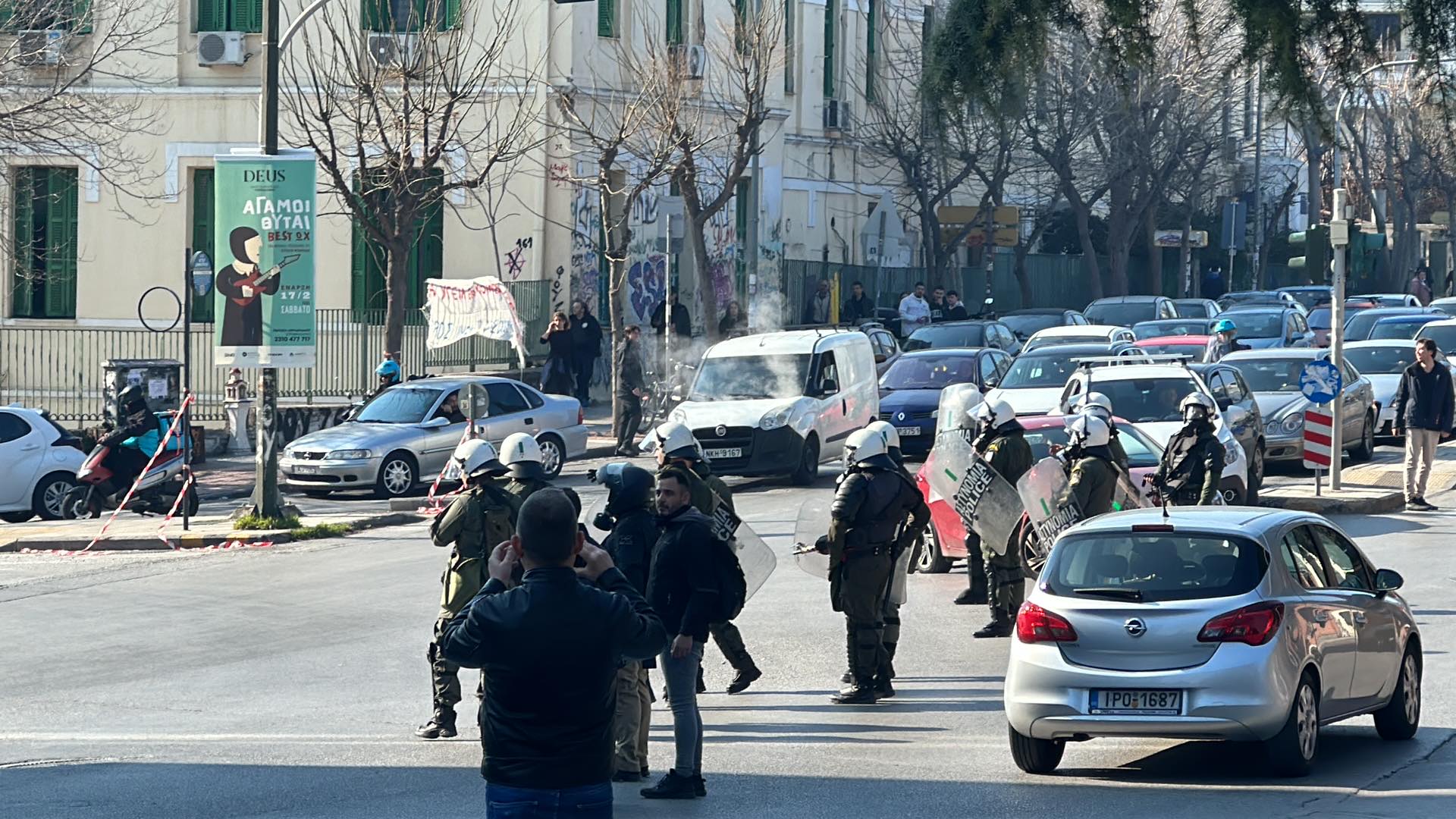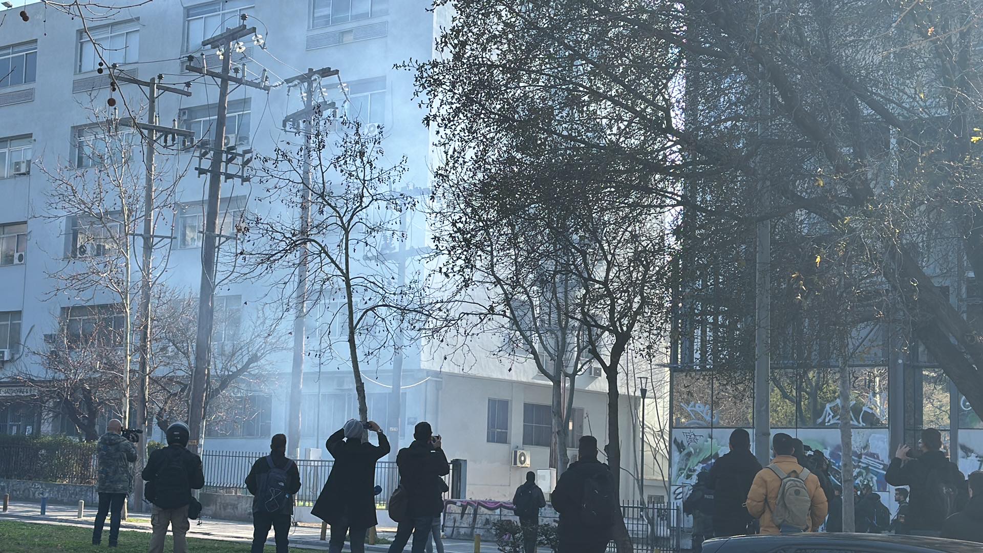 Ομάδα ατόμων μπήκε στο campus και άρχισε να πετά πέτρες προς τις αστυνομικές δυνάμεις.